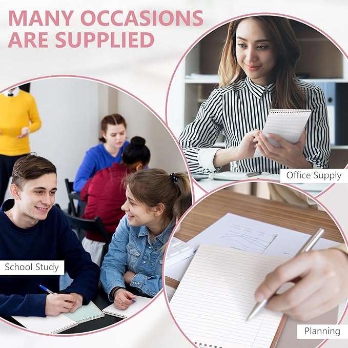 - Spiral Binding: our office steno book is equipped with top spiral binding, featuring a strong metal spiral coil, this design allows you to turn the pages without the worry of unintentional tears smoothly; Additionally, the top bound orientation is ideal for left-handers, eliminating the discomfort of resting your hand in the spiral while writing