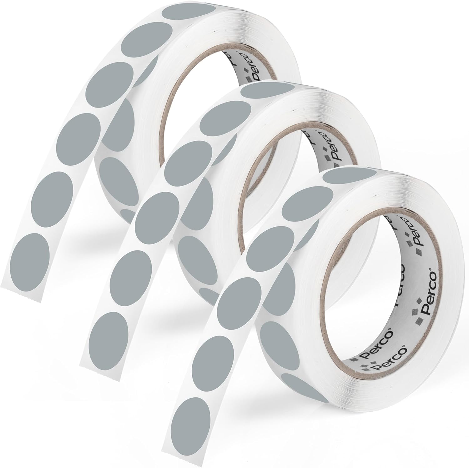 Perco Grey 1-Inch Round Circle Dot Sticker Labels - Multi-Roll Pack (3 Rolls, 1,000 Labels Each) - Permanent Adhesive, Vibrant Colors, Strong Hold - Perforated for Easy Use - Made in USA