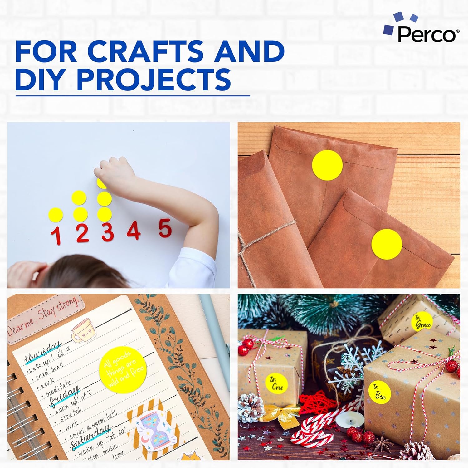 Perco Fluorescent Yellow 2-Inch Round Circle Dot Sticker Labels - Multi-Roll Pack (3 Rolls, 500 Labels Each) - Permanent Adhesive, Vibrant Colors, Strong Hold - Perforated for Easy Use - Made in USA