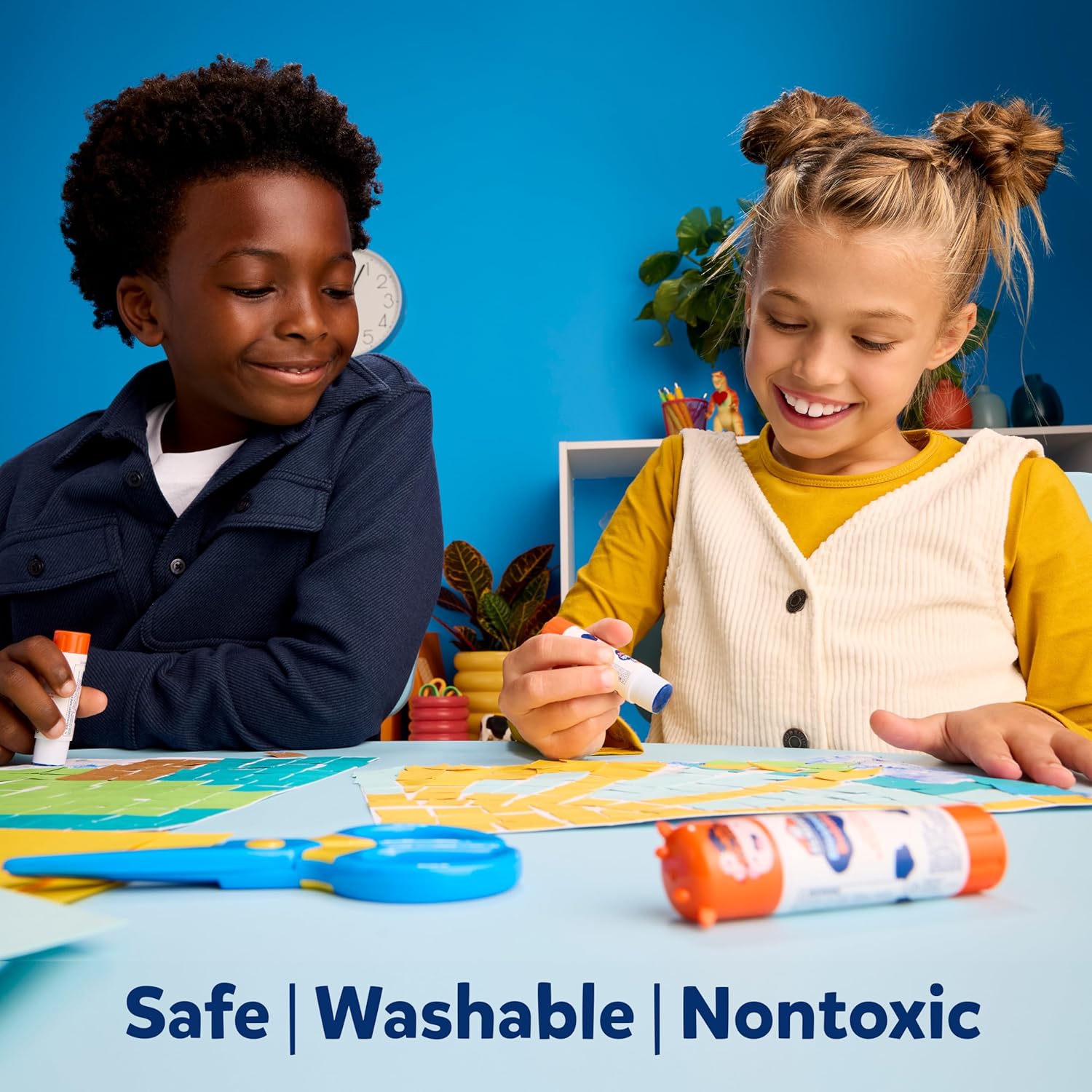 Elmer's BlooStick Buddies Glue Sticks, Disappearing Blue Glue Stick, Anti-Roll Cap, 6g, 48 Count, #1 Teacher Brand