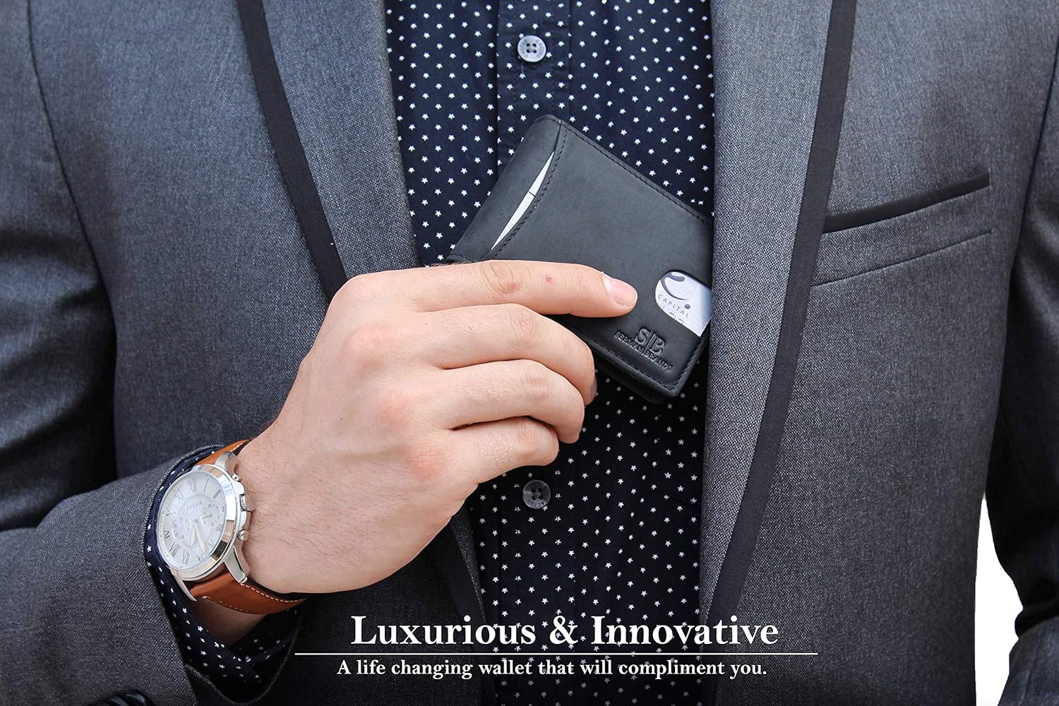 SERMAN BRANDS RFID Blocking Slim Bifold Genuine Leather Minimalist Front Pocket Wallets for Men with Money Clip Thin Mens