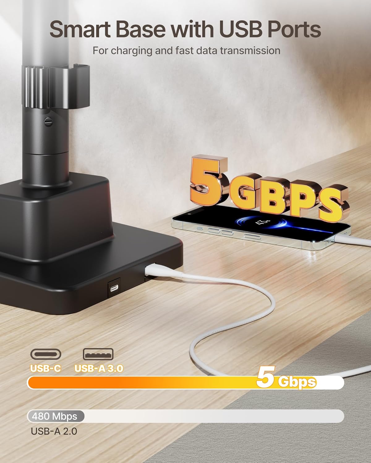 - 【USB Ports for Effortless Data Transfer & Clean Desk Setup】 Say goodbye to tangled cables and hello to a more organized workspace. With built-in USB-A 3.0 and USB-C ports, this monitor arm makes data transfer quick and effortless—no need to reach behind your desk every time. Whether you're gaming, designing, or working from home, this arm adapts to all setups, keeping your space neat and your devices connected. The integrated cable management system hides messy wires, giving you a clean, clutter-free environment for ultimate focus and productivity