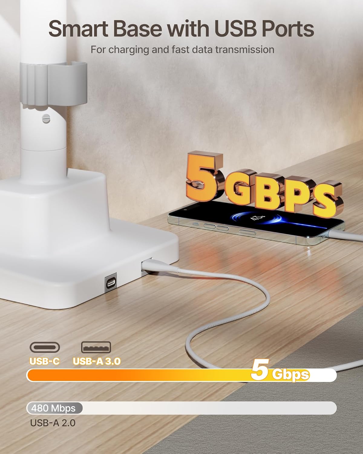 - 【USB Ports for Effortless Data Transfer & Clean Desk Setup】 Say goodbye to tangled cables and hello to a more organized workspace. With built-in USB-A 3.0 and USB-C ports, this monitor arm makes data transfer quick and effortless—no need to reach behind your desk every time. Whether you're gaming, designing, or working from home, this arm adapts to all setups, keeping your space neat and your devices connected. The integrated cable management system hides messy wires, giving you a clean, clutter-free environment for ultimate focus and productivity