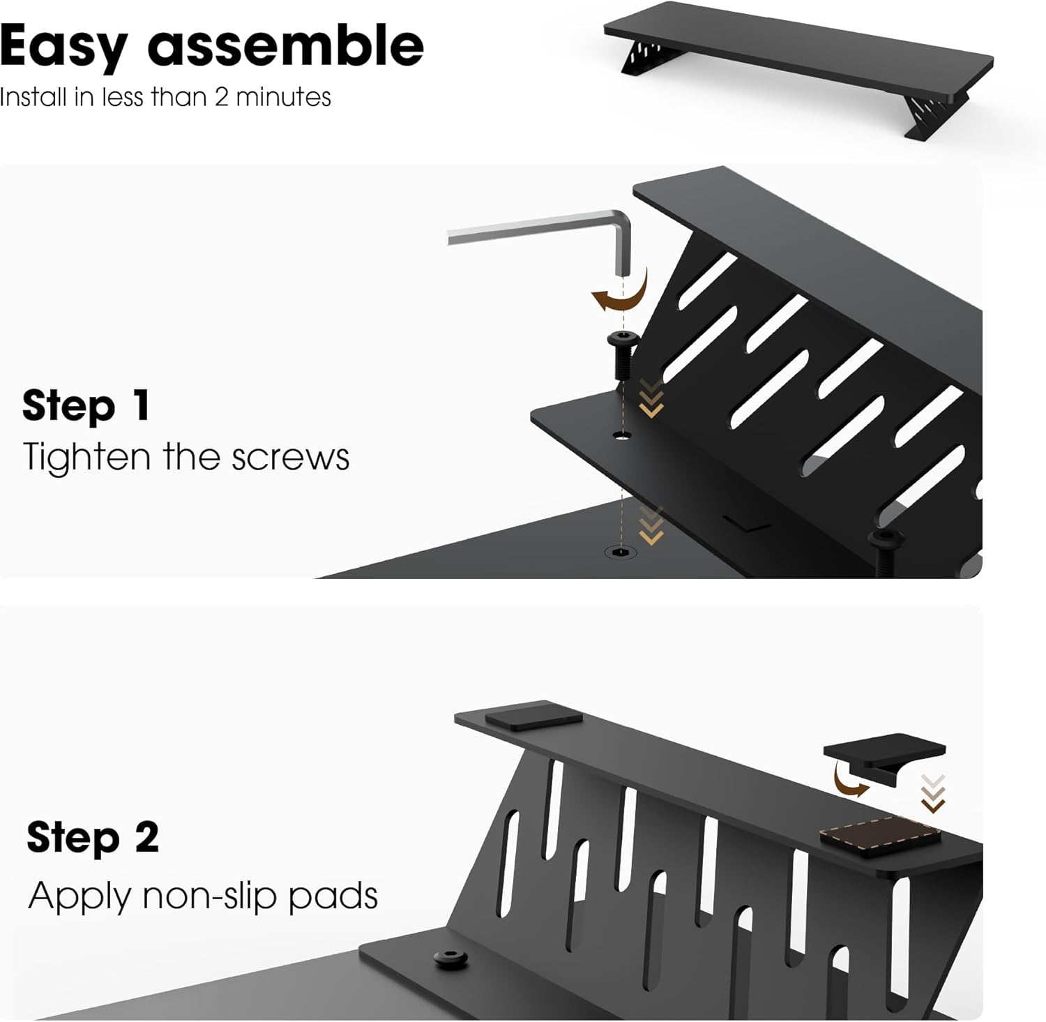 - 【Avoid Shoulder Pain】Desk shelf is raised 3.9" to a comfortable line of sight, effectively reducing the pressure on the neck and spine. The improvement of posture will make you more focused and prevent cervical spondylosis.