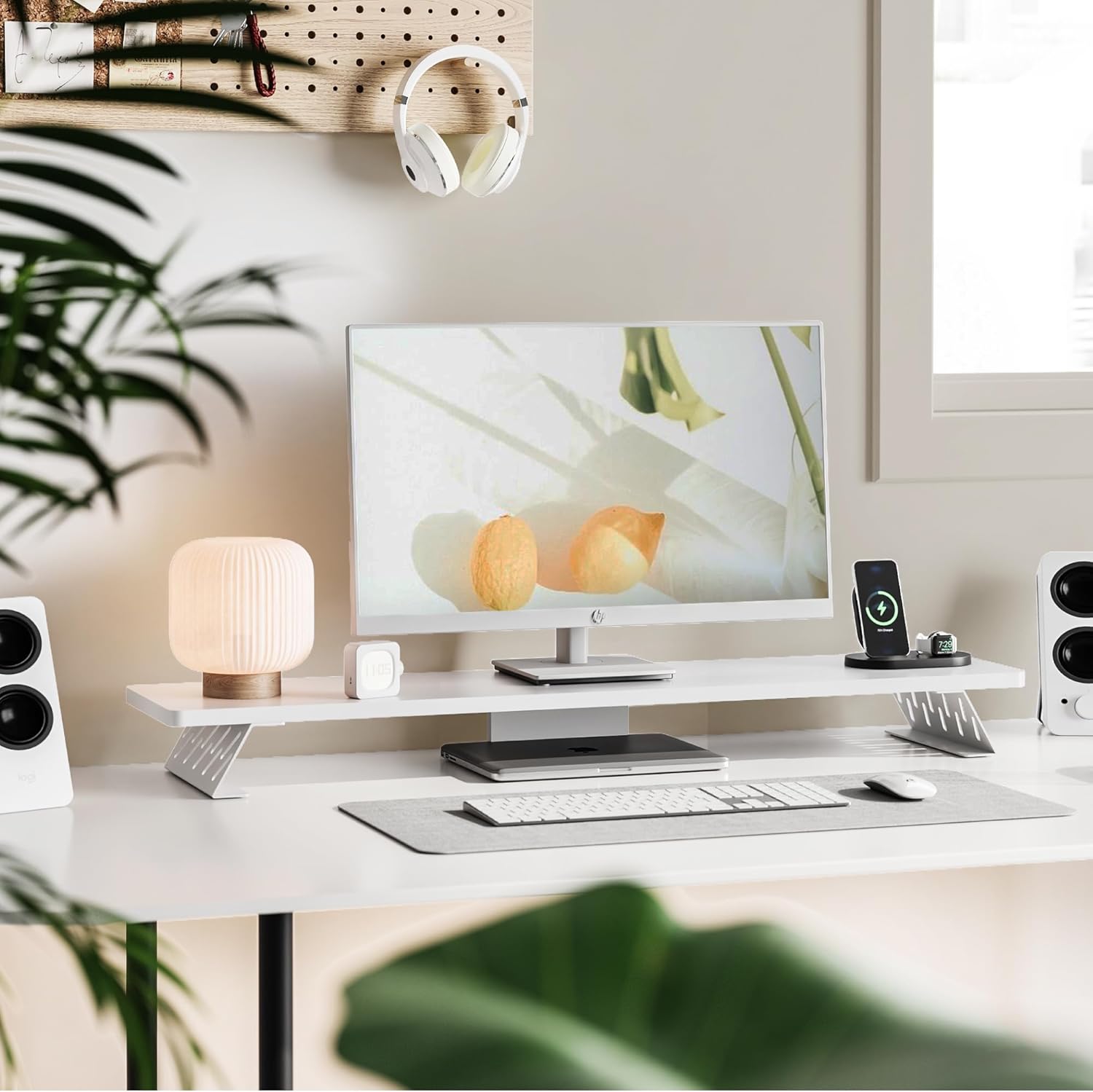 - 【Monitor Stand for Desk】To ensure fenge monitor stand can be used permanently, we have adopted high-quality thickened panels and metal legs. With heavy-duty steel base, so you don't have to worry about collapse or shaking during use. Each desk leg is equipped with a non-slip pad to prevent the table from being scratched. The maximum load-bearing of the monitor riser can reach 66 pounds.