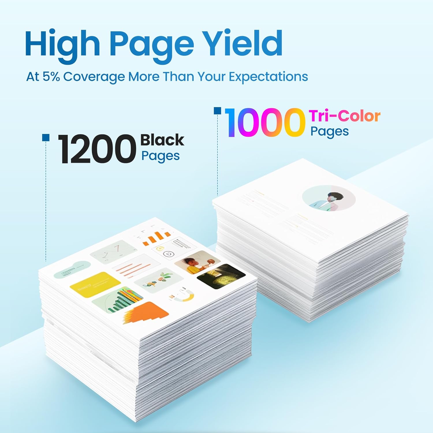 - Higher Page Yield: Up to 1,200 Pages Per 910XL Ink Cartridge Black and 1,000 Pages for 910XL Color Ink Cartridge (At 5% coverage of A4 paper).