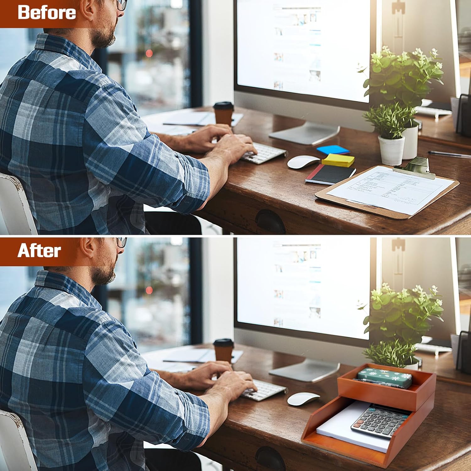 - Suitable Size: The size of the lower layer is 13*9.4*2.36 inch, and the larger space can meet the storage needs of various items. The upper layer is 9.4*6.7*2.1 inch in size, which is suitable for placing small stationery. Such a size design will not take up too much space whether it is placed on a large office desk or a small home work area, and it can also effectively classify and store items.