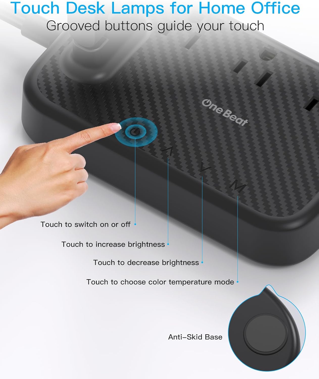 One Beat Desk Lamp with 6 Outlets 4 USB Ports(2×USB-C),Eye Protection Table Lamp Power Strip with 4 Color Modes 5 Brightness Touch LED Desk Lamps for Home Office College Dorm Room Essentials(Black)