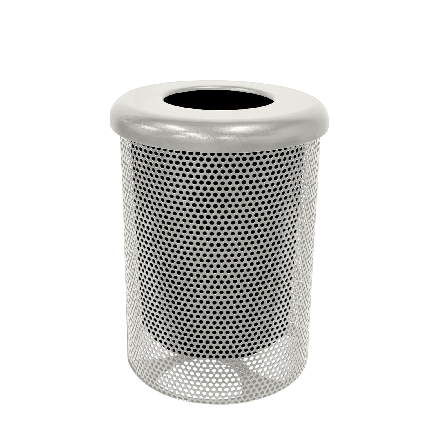 RFT-P-TXTGRY Heavy Duty Round Trash Receptacle with Flat Top, Liner Included, 32 Gallon, Textured Grey, Made in America