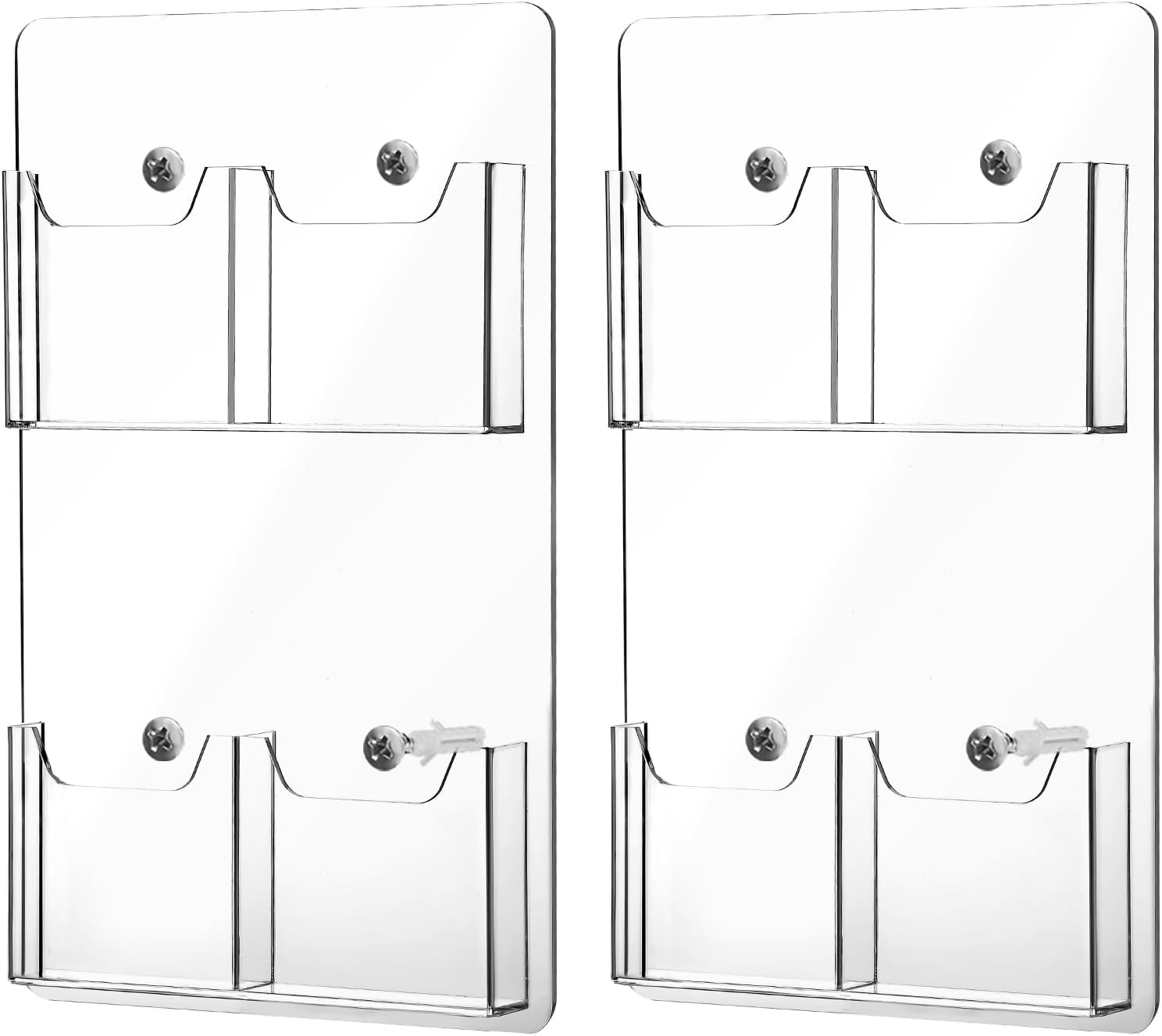 Eersida 2 Pack Acrylic Brochure Pamphlet Holder Wall Mount Clear Brochure Display Holder Plastic Trifold Flyer Rack Literature Storage Rack for Offices Waiting Room (9 x 15 Inch,4 Pockets)