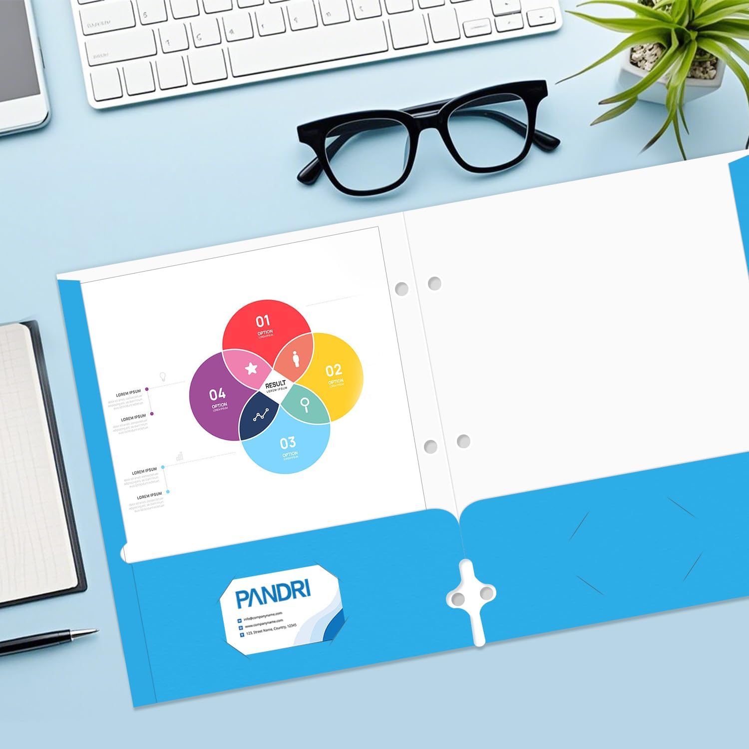Two Pocket Portfolio Folders, PANDRI 60 Pack 3 Hole Punched 2 Pocket Folders for 3 Ring Binder, Letter Size Paper File Folder for School Office Home Business, Lightblue