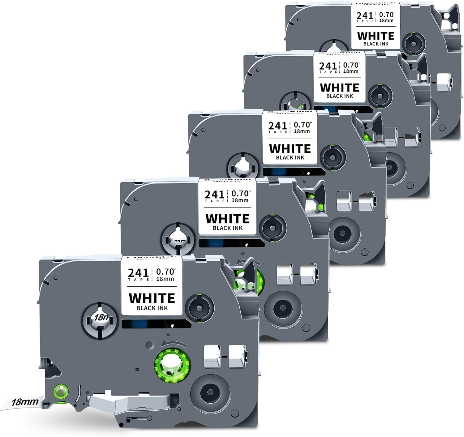 - Package Includes: 5-Pack Replacement for Brother Label Maker Tape TZe-241 TZe241 TZ241 TZ-241 TZe TZ Tape 18mm 0.7 Laminated, Color: Black on White