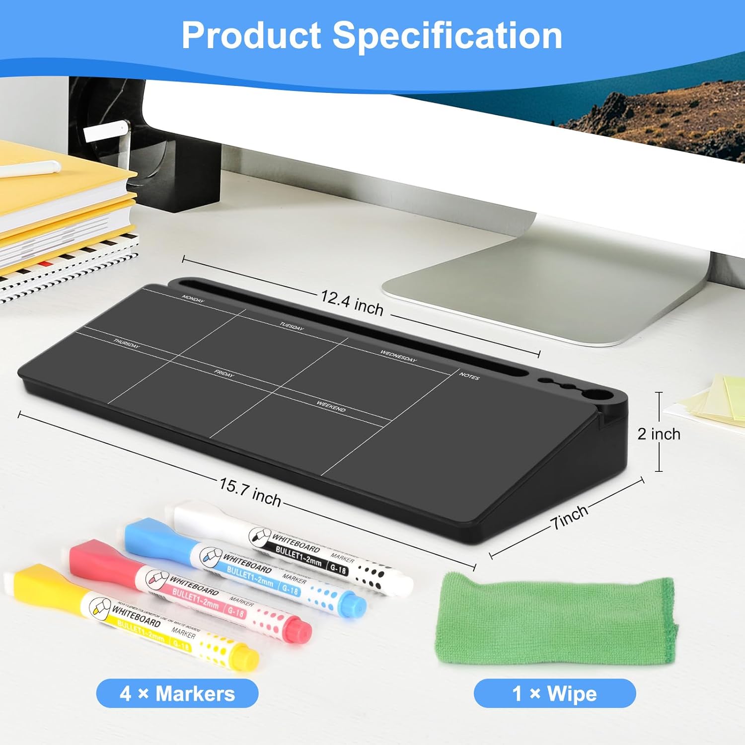- Weekly Planner & Whiteboard - Stay on top of your weekly schedule with ease using our desktop whiteboard. It features a weekly grid with clearly defined sections for each day and notes. Crafted from tempered glass, it offers a smooth writing experience and effortless clean-up—no stains, no scratches. Perfect for organizing tasks, writing to-do lists, and taking quick reminders.