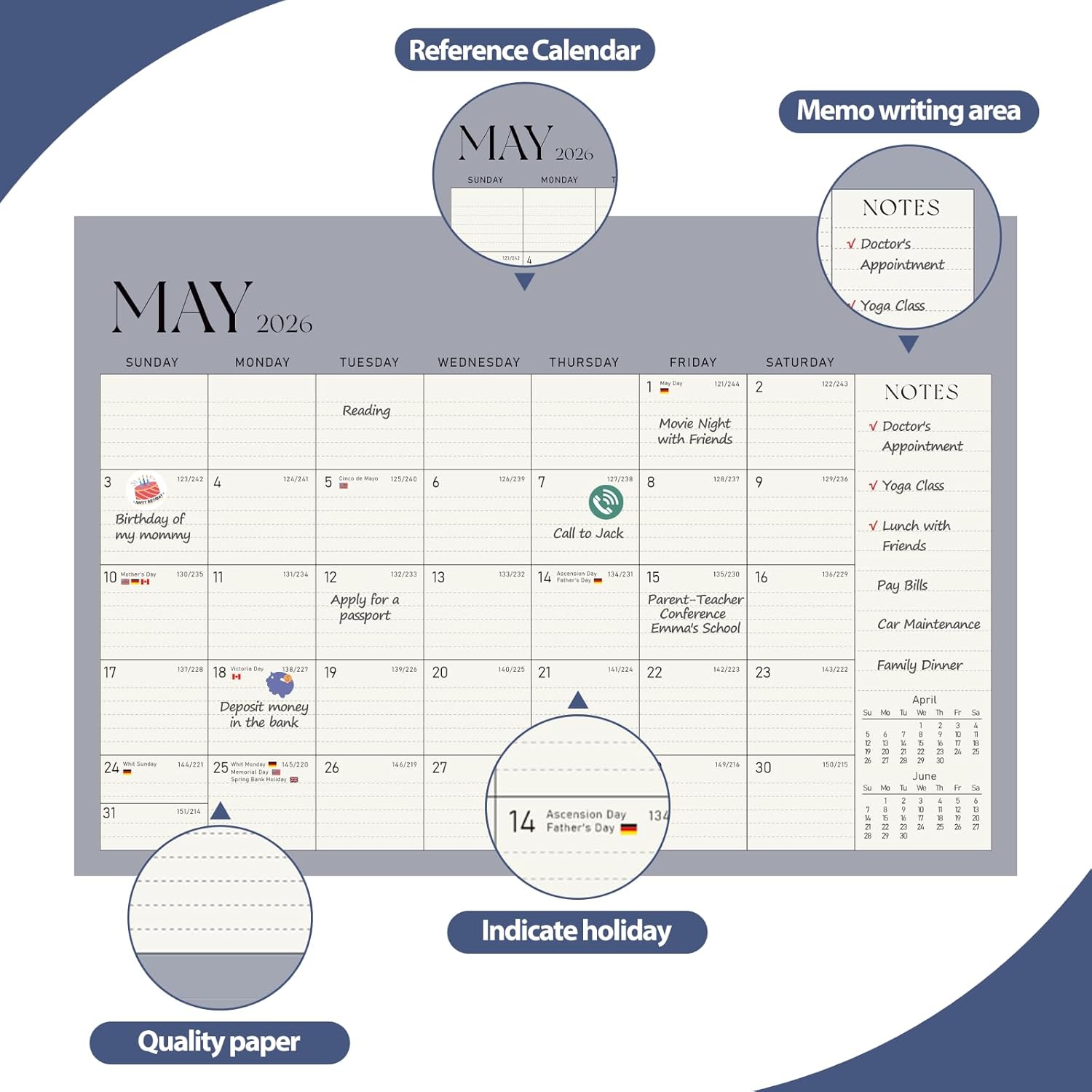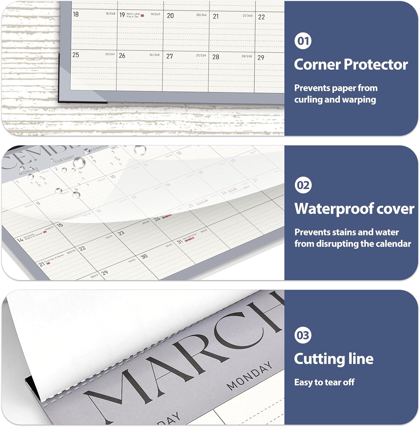 - [QUALITY THICK PAPER] -Crafted with thick paper, the calendar prevents ink bleed-through, keeping the surface neat and tidy for a clear and pleasant view. Our calendar is printed on FSC-certified wood-based paper.