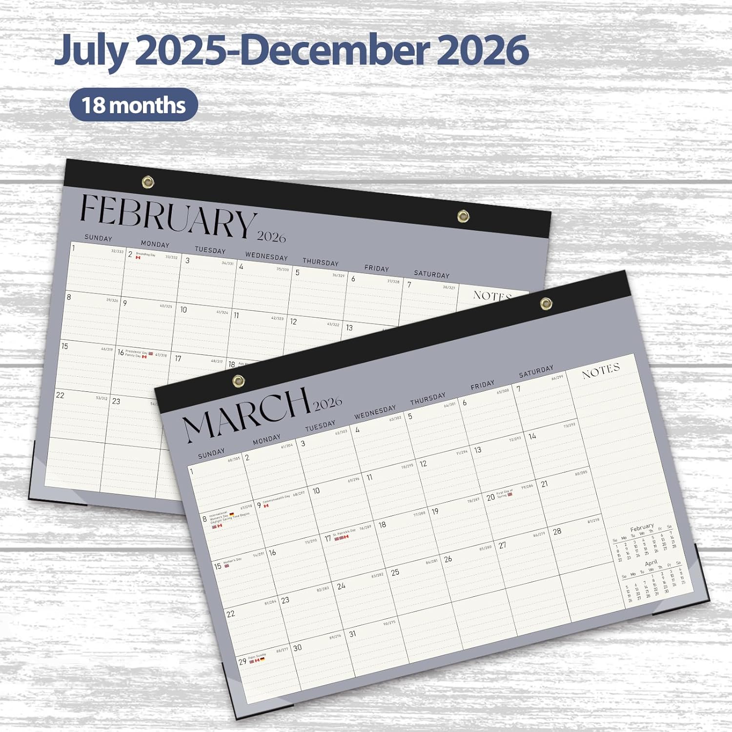 - [EXTENDED PLANNING PERIOD] -The 2025 desk calendar covers 18 months from July 2025 to Dec 2026, offering an extended planning period for your schedules, appointments and events.