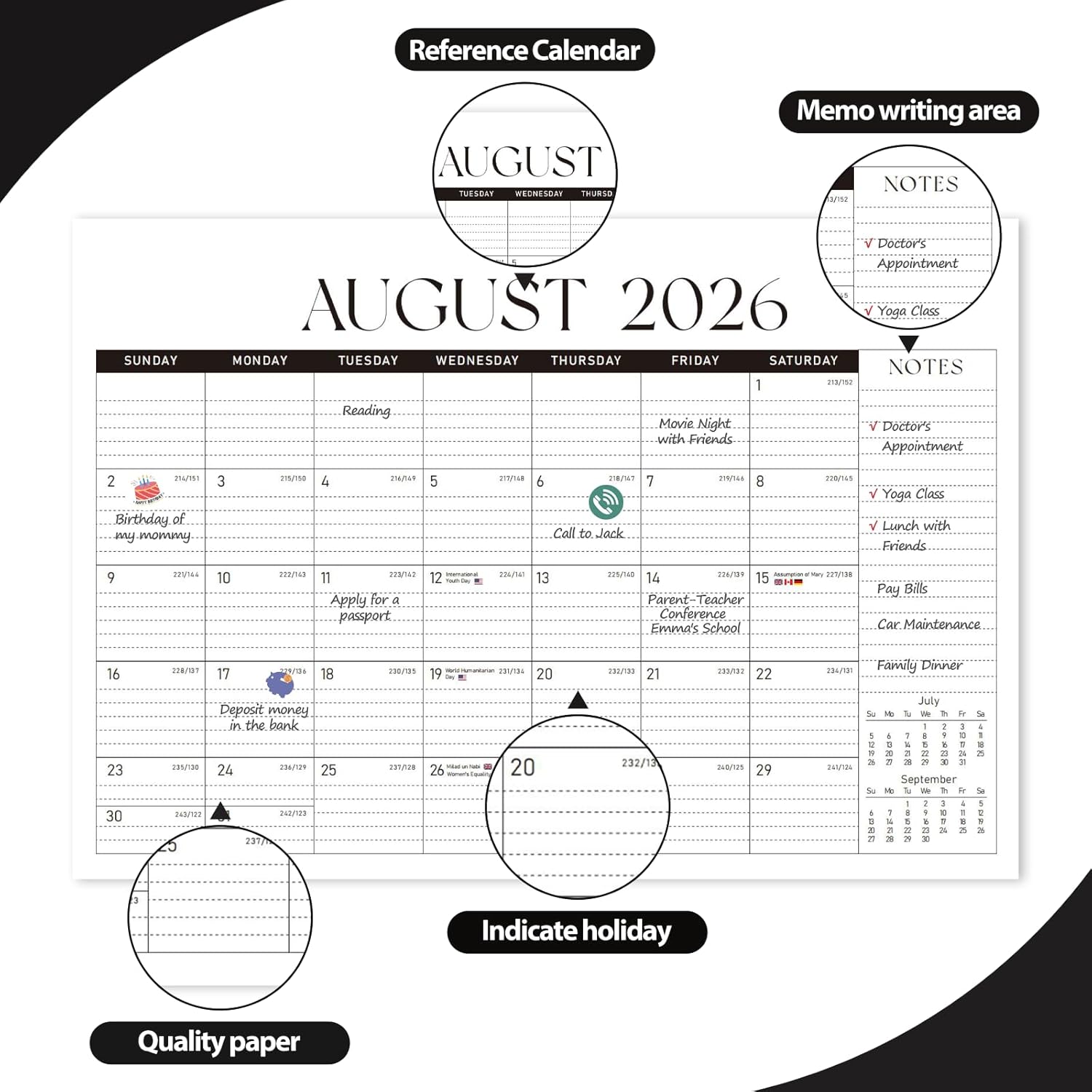 - [IMPORTANT DATES COVERAGE] -Our calendar covers all important holidays and events, ensuring that you can plan ahead effectively. With its large size of 17*12 inches, this calendar provides ample writing space as well.