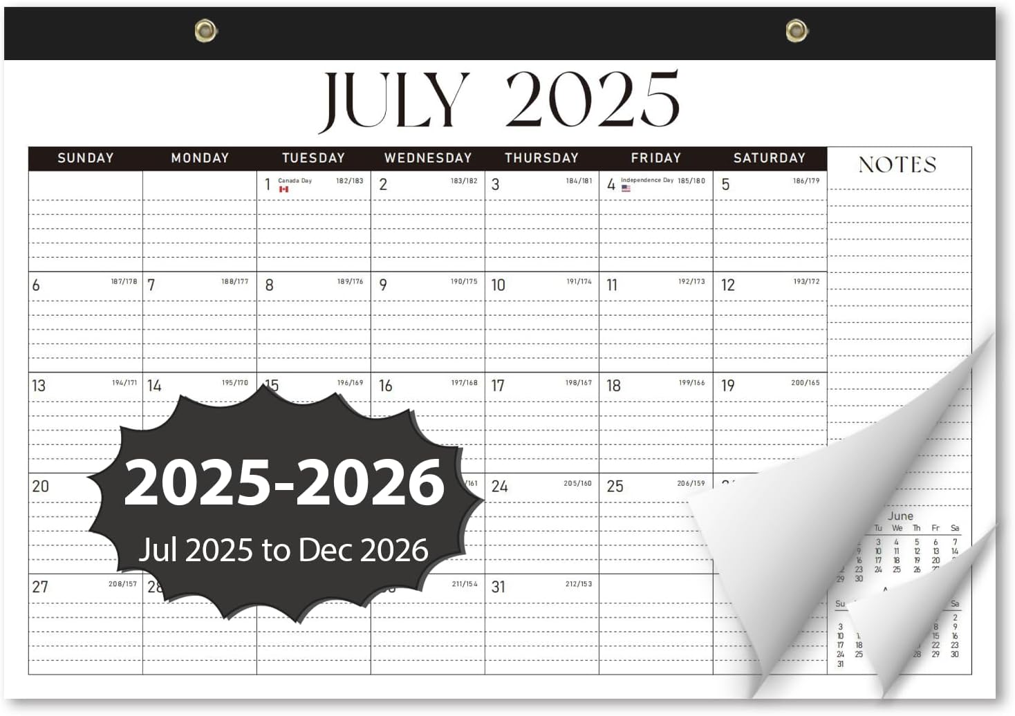 Desk Calendar 2025-2026, Monthly Desktop Large Calendar (July 2025-December 2026) Desk Wall Planner for Family Office Teacher School, 17" x 12" Black-White