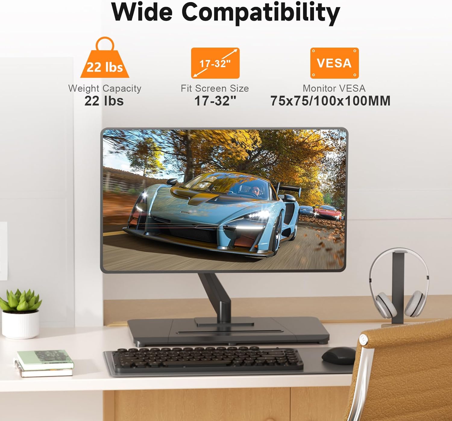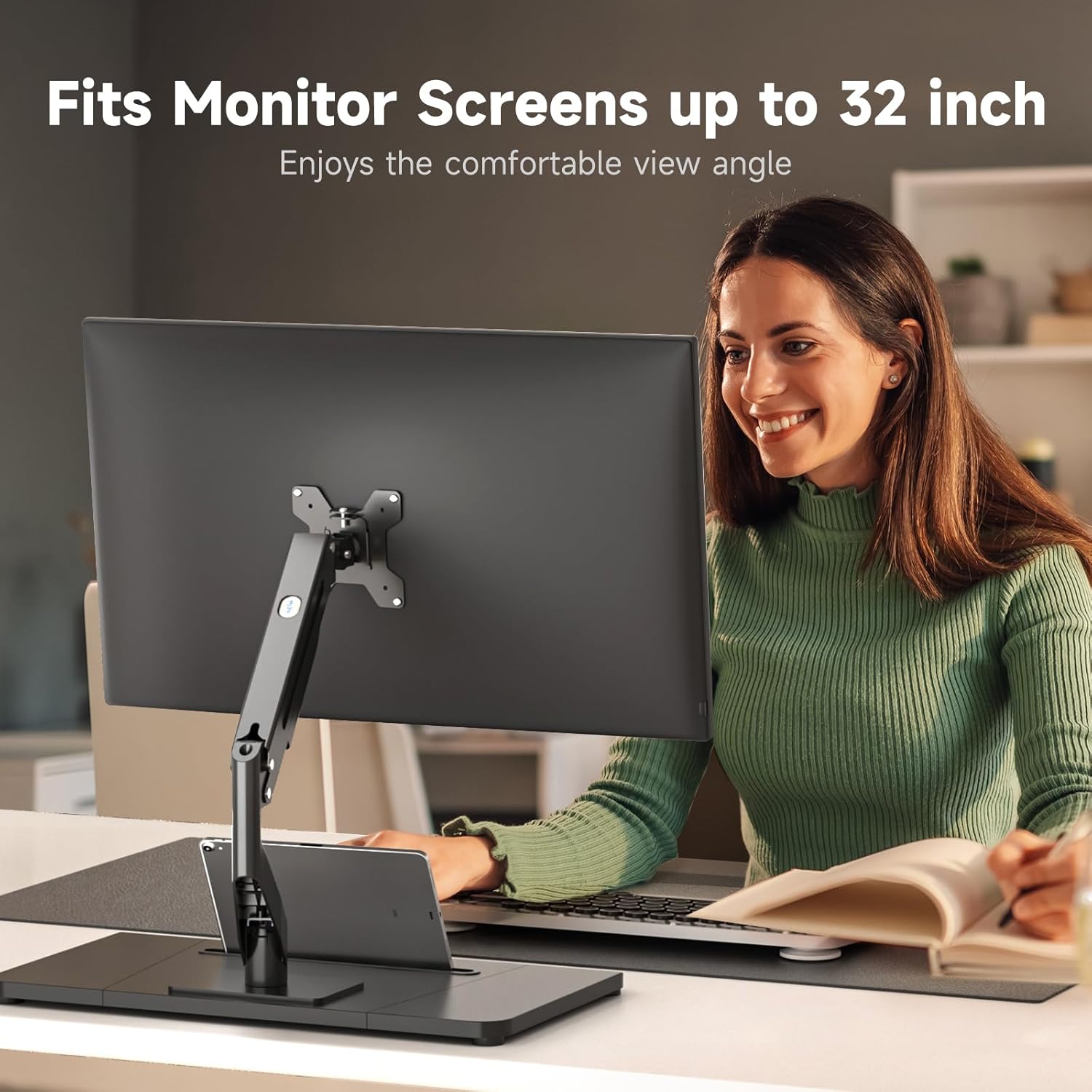 suptek Single Monitor Mount Gas Spring Arm Mount with Base,Free Standing Pneumatic Height Adjustable Monitor Desk Stand for 17 to 32 inch,Holds up to 22 lbs,Black(ML8C)