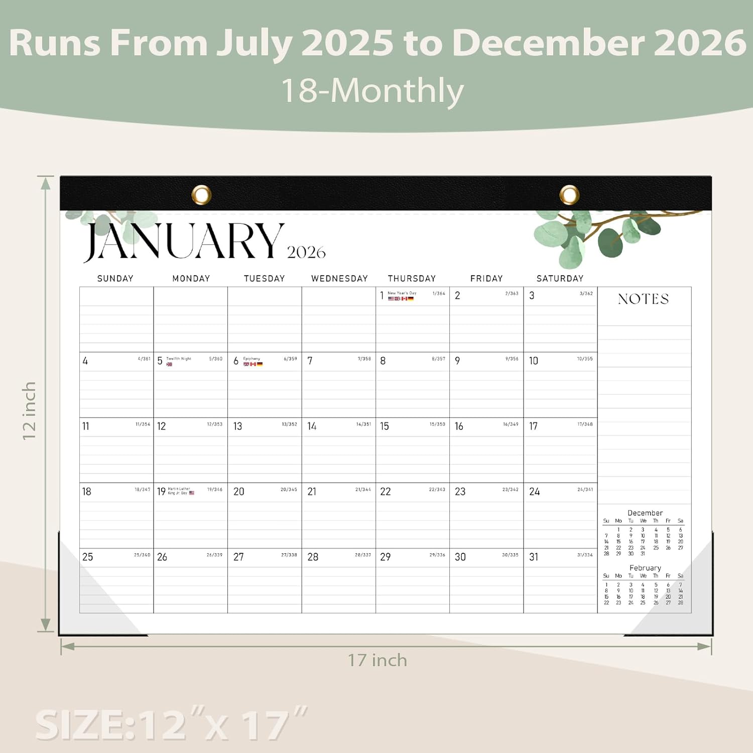 - [18 MONTHS CALENDAR] - Our 2025-2026 desk calendar (17"x12") covers 18 months from July 2025 to December 2026. With highlighted holidays and Julian dates, this calendar ensures you never miss an important deadline or event, making it perfect for long-term projects, school or teaching schedules, and work commitments.