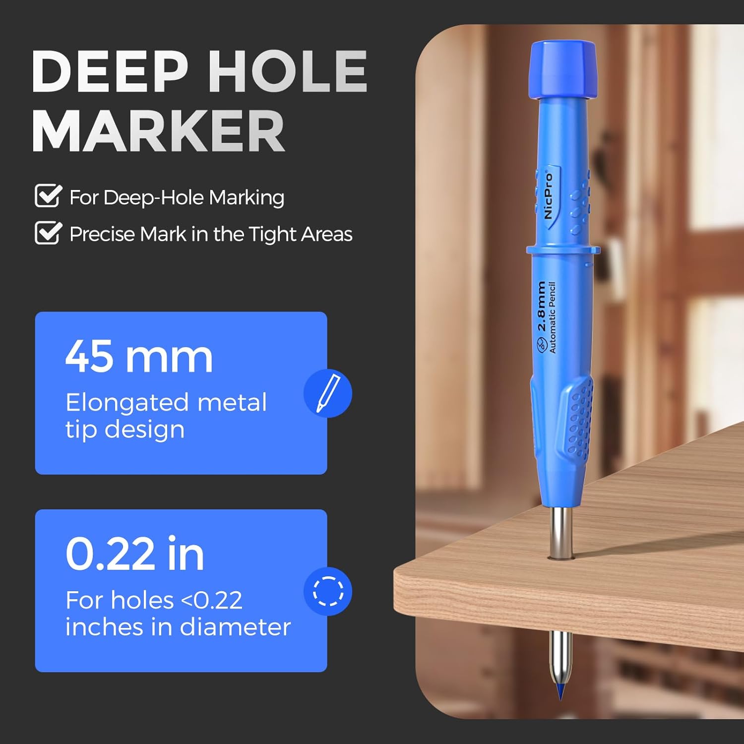 - Deep Hole Marker Pencil: The construction pencils designed with a 45mm elongated tip, which is more convenient to precise mark in deep or narrow holes and gaps that traditional pencils can't reach