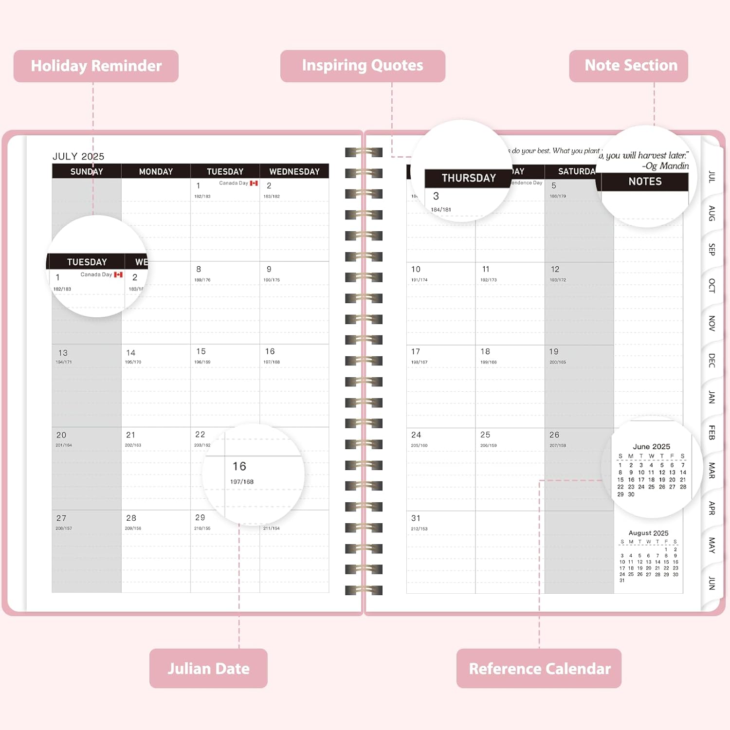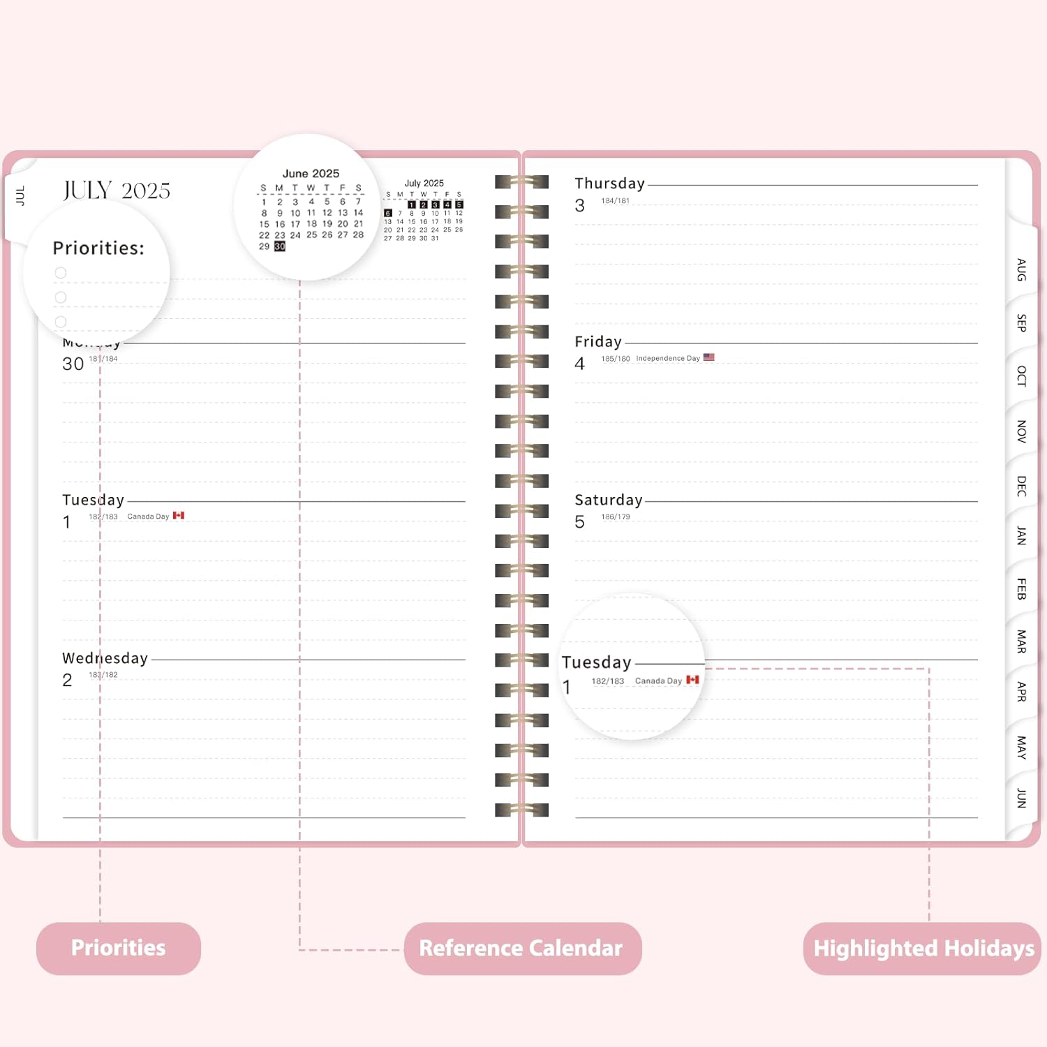 - [COMPREHENSIVE PLANNING] – This Planner 2025-2026 covers12 months from July 2025 to June 2026. It includes monthly and weekly calendar pages, providing ample room to track exams, meetings and important events - making it a useful organizational tool for your entire academic or work year.