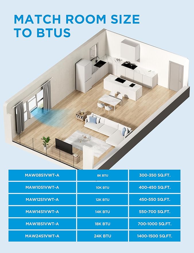 - Powerful Cooling Performance: This 24,000 BTU window air conditioner delivers robust cooling, perfect for beating the summer heat in large rooms up to 1,500 square feet.