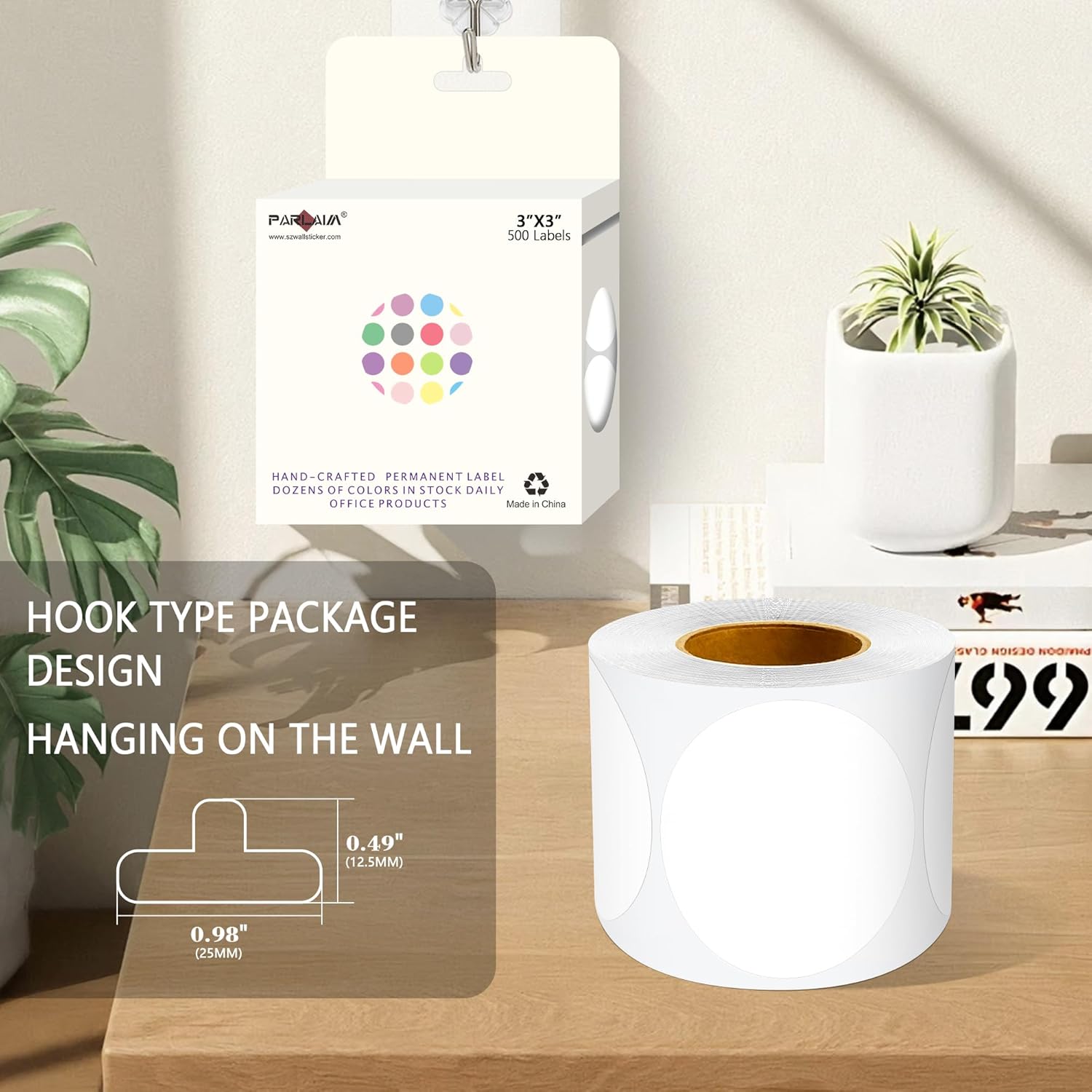 PARLAIM 3" Diameter Round White Color Coding Sticker, 4 Rolls 2000PCS Circle Dot Label,Permanent for Inventory Box Labeling