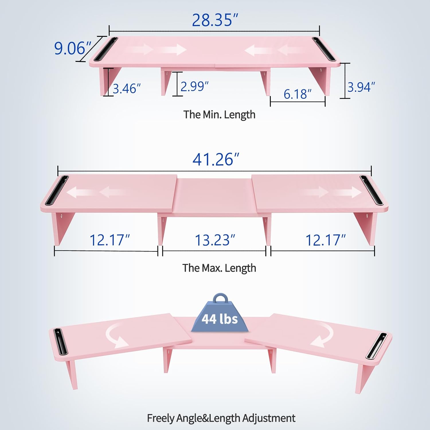 - Flexibility of extension and move: With two sides resting on the middle riser with a pivot point, this desk stand riser makes the whole unit easy to extend and angle.
