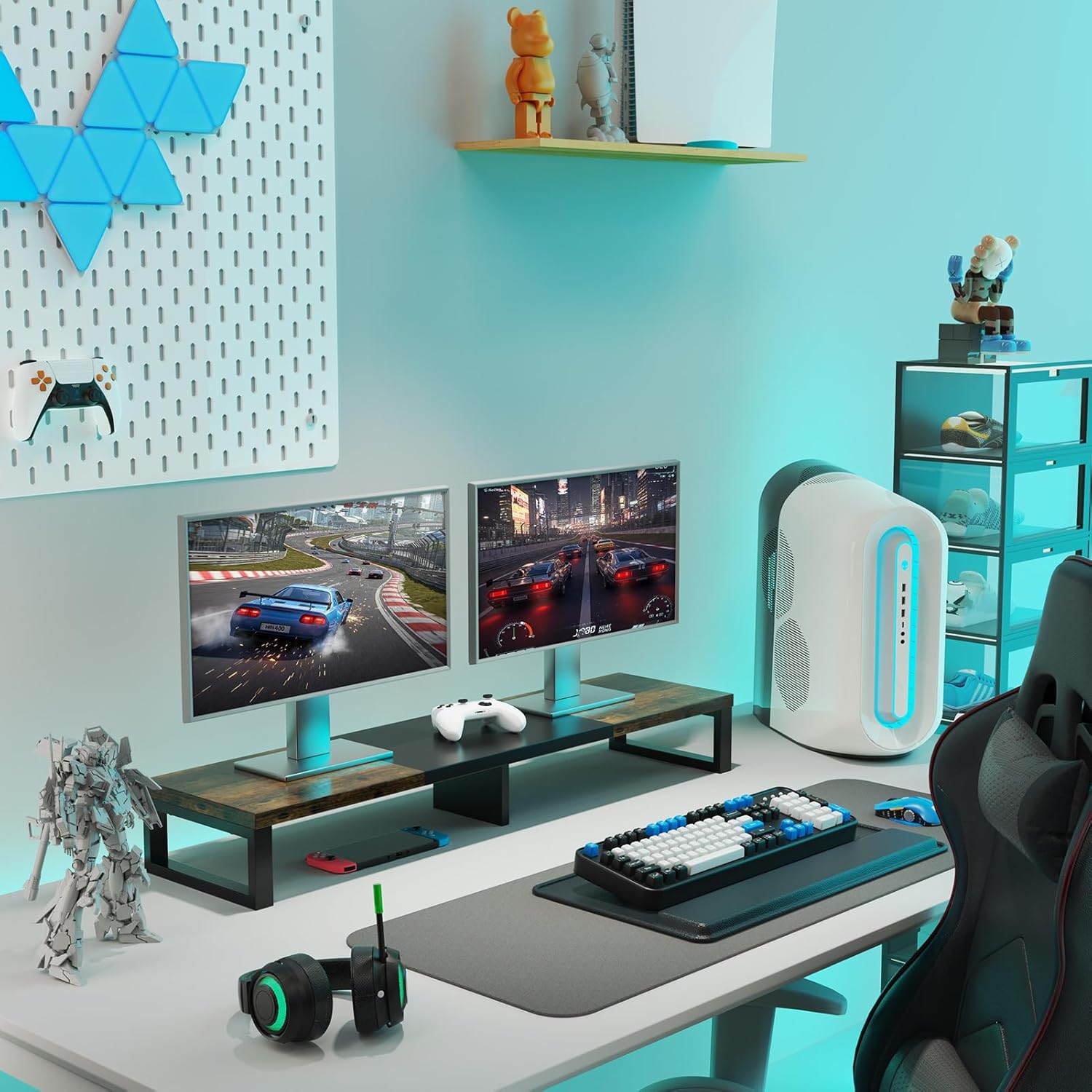 - Monitor Riser with 100lb Capacity: Built with reinforced steel legs and a 39.4" platform, this dual monitor stand doubles as a printer stand, laptop riser, or TV stand. Rock-solid stability meets versatile functionality.