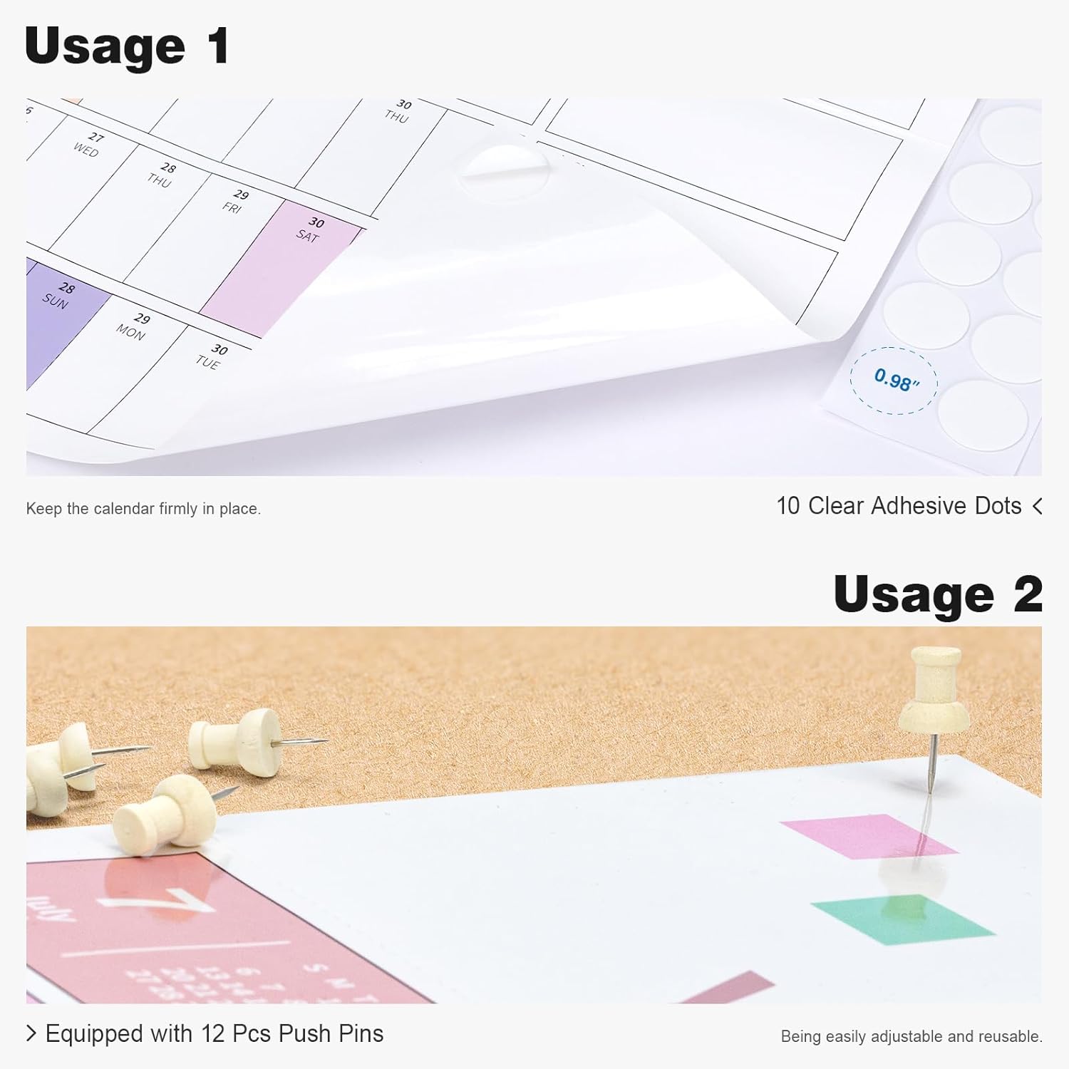 - ✨ 32" x 48" Large Calendar: Single-sided rainbow calendar that is easy to hang using transparent adhesive stickers and push pins, and is easy to clean. Monthly calendar keeps you organized and on top of things, even during the busiest and most hectic times of your life.