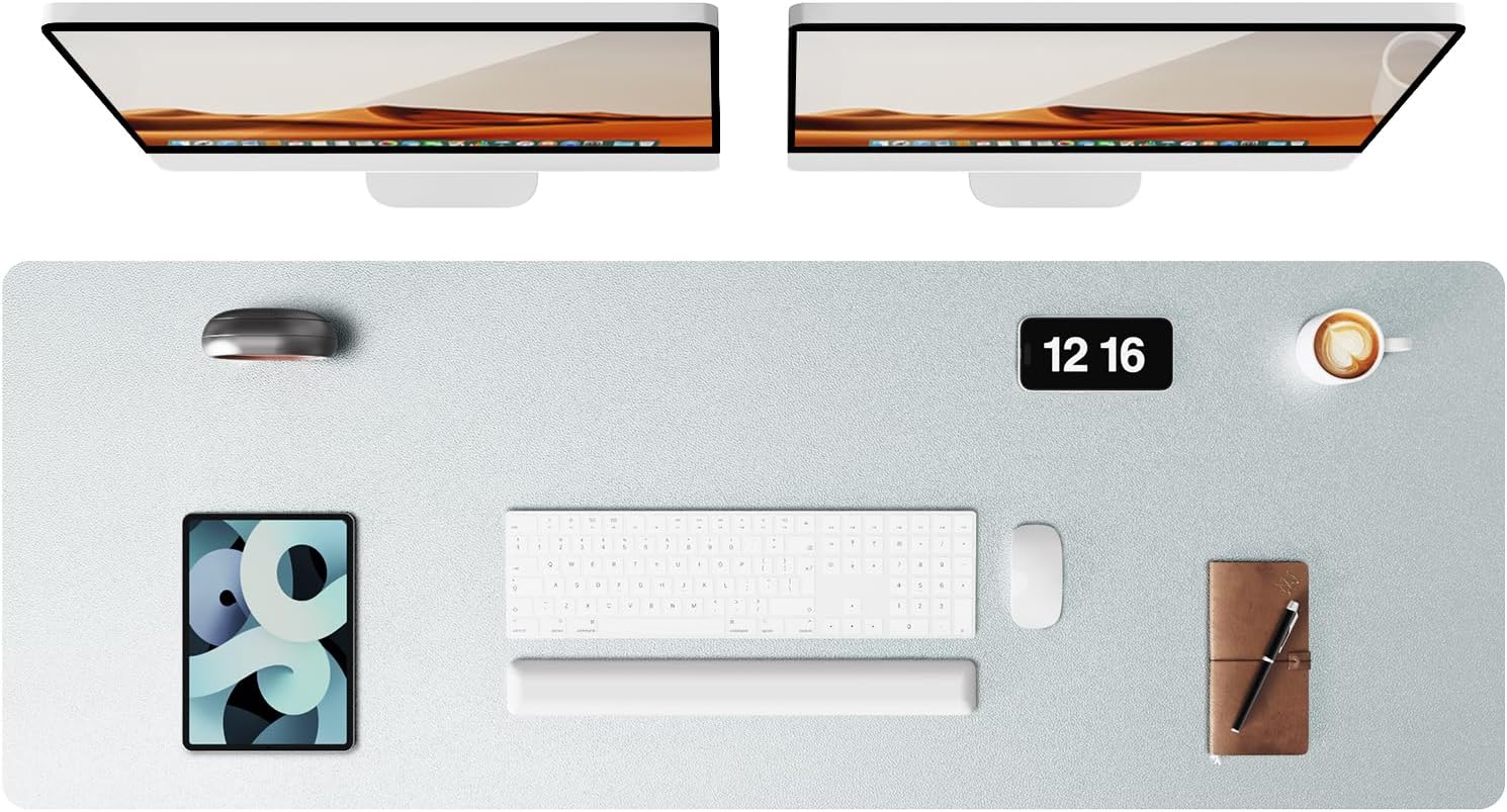 YSAGi Leather Desk Pad Protector, Office Desk Mat, Large Mouse Pad, Non-Slip PU Leather Desk Blotter, Laptop Desk Pad, Waterproof Desk Writing Pad for Office and Home (Silver, 47" x 17")