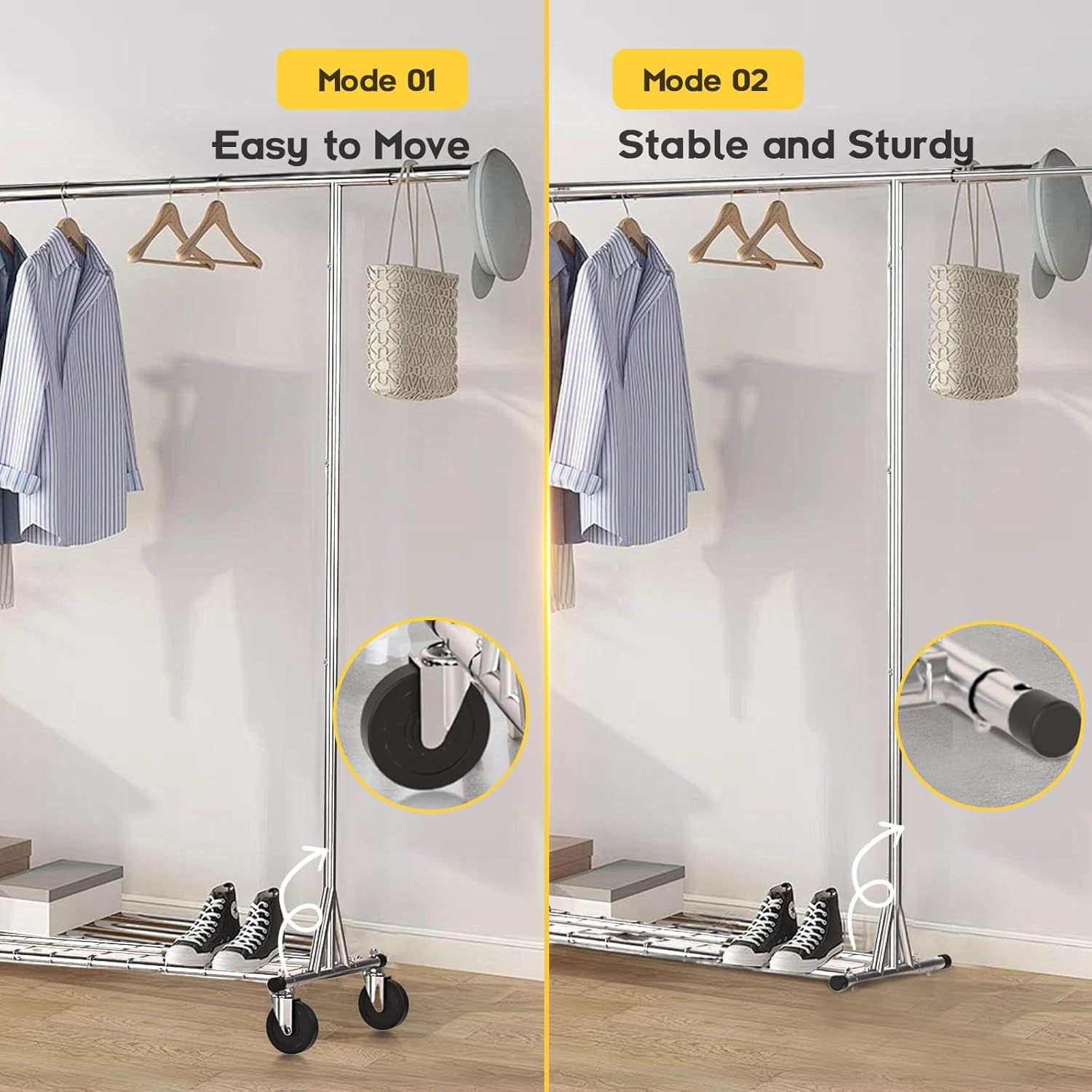 - 3-in-1 Design: This commercial clothing rack serves as a garment rack, shoe rack in one. Ideal for organizing clothes, drying laundry, or displaying items in a retail setting.