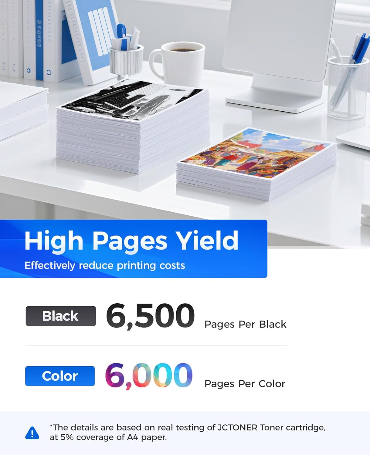 - High-Yield: up to 6,500 pages per TN436 Black and 6,000 pages per TN436 Color (Total 24,500 pages, 5% coverage).