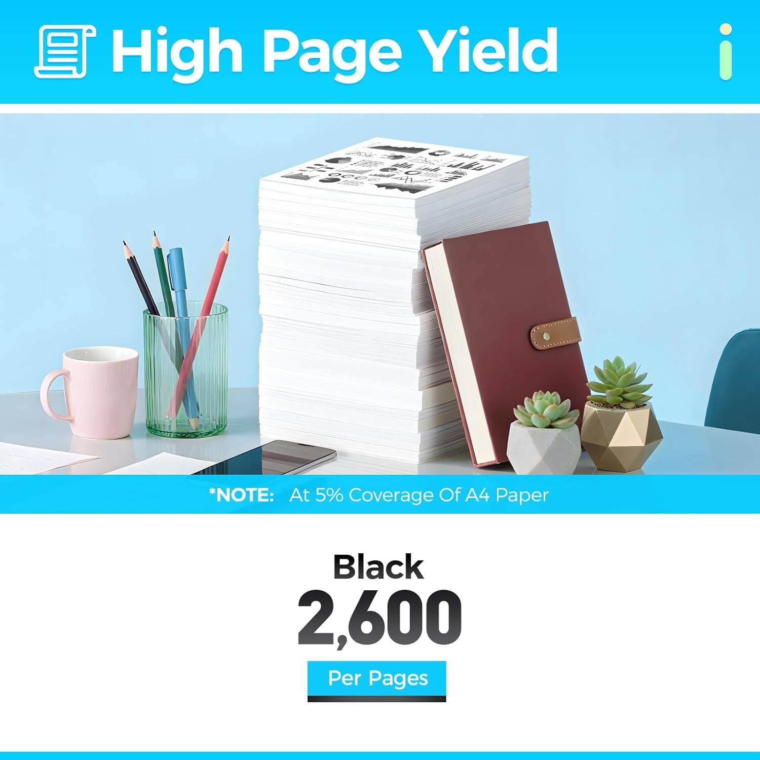 - High-Yield: up to 2,600 pages per E310 Black (Total 10,400 pages, 5% coverage).