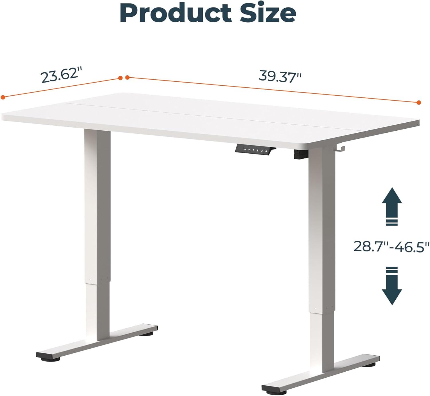 Adjustable Stand Up Desk with Memory Preset, Standing Desks 40 x 24 Inch Electric Home Office Desk Computer Workstation, Splice White Top + White Frame