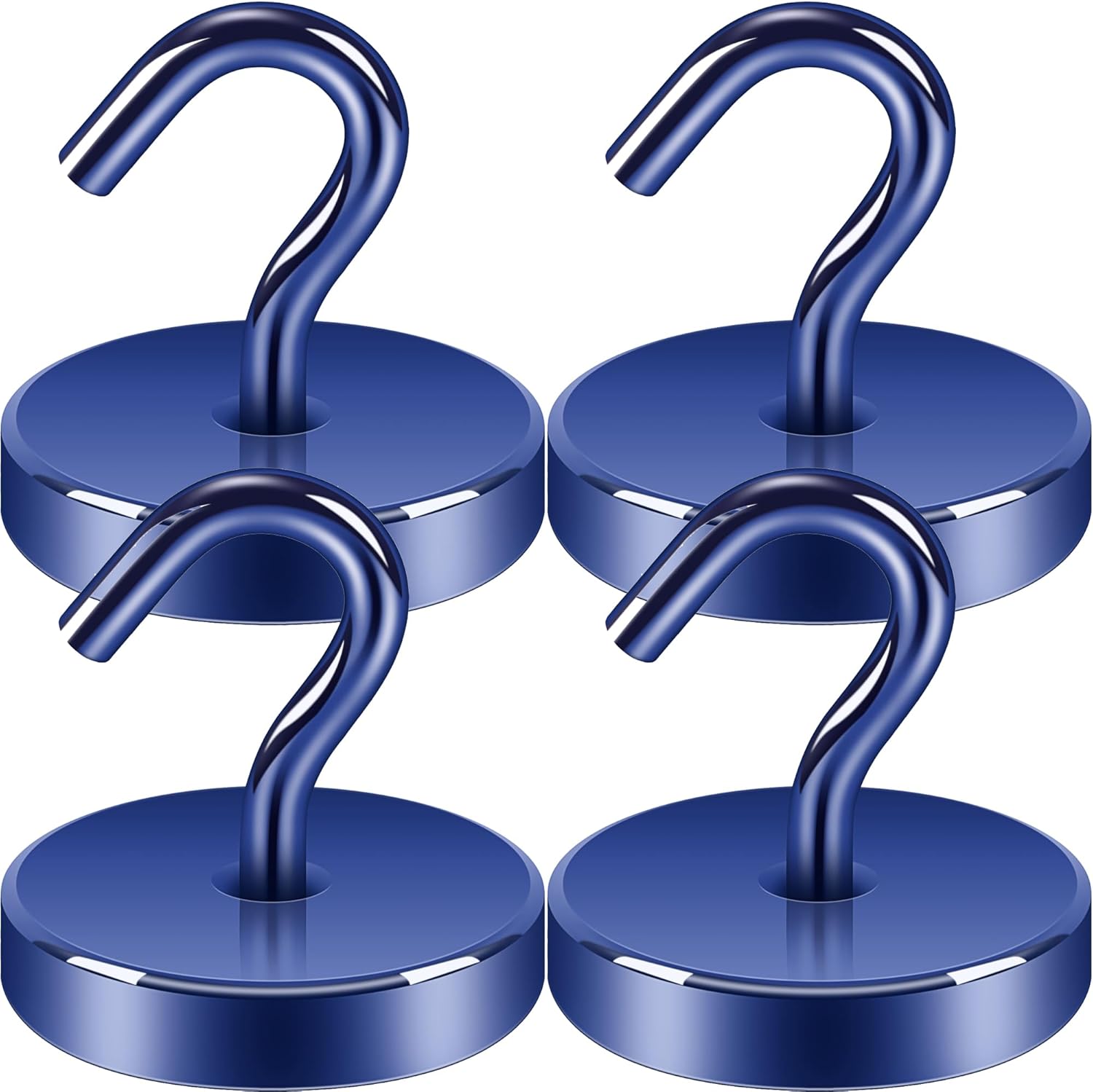Neosmuk Magnetic Hooks, Heavy Duty 170lb Strong Magnets for Cruise Cabins, Ship Essentials, Large Metal Hooks for Hanging on Fridge(Navyblue,Pack of 4)
