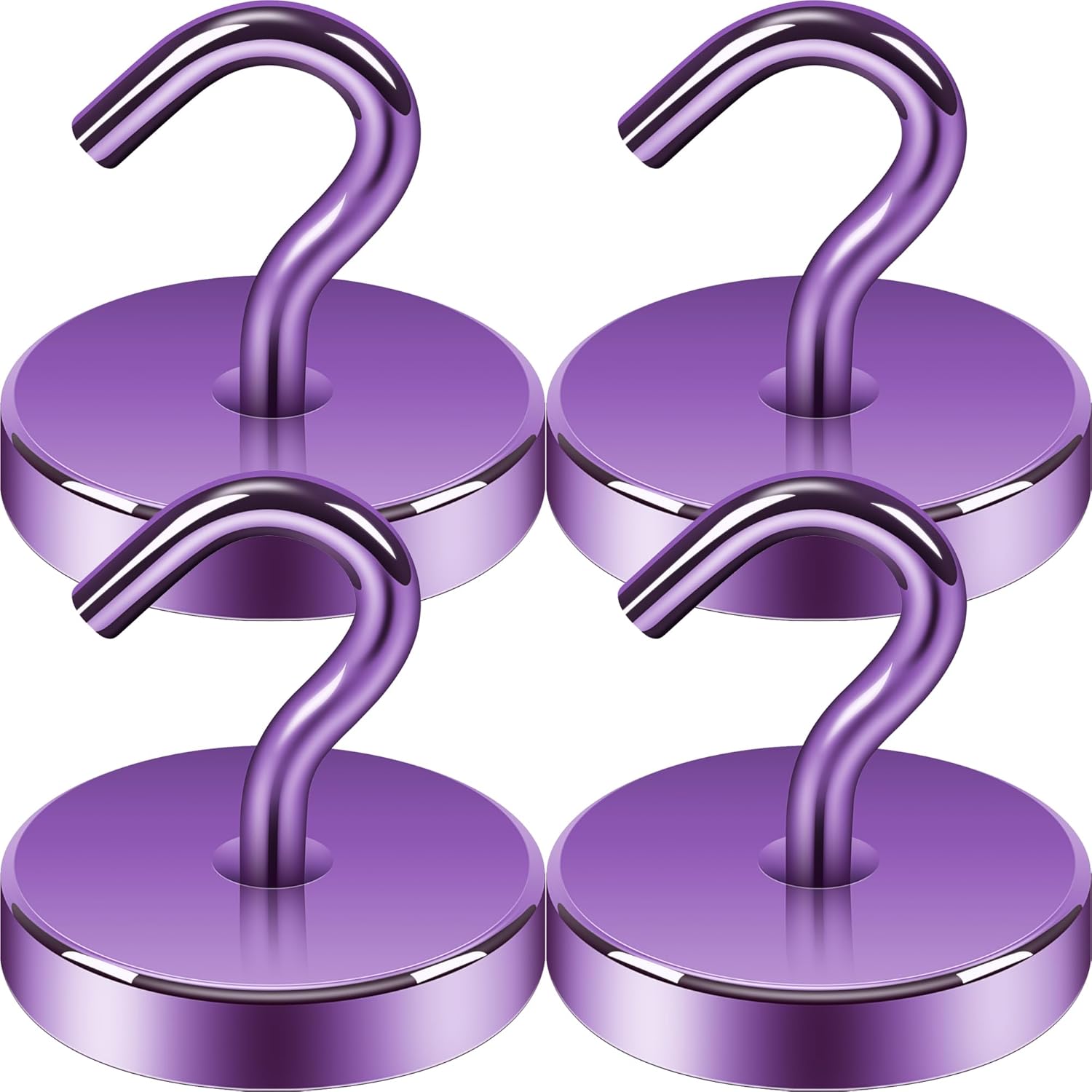 Neosmuk Magnetic Hooks, Heavy Duty 170lb Strong Magnets for Cruise Cabins, Ship Essentials, Large Metal Hooks for Hanging on Fridge(Purple,Pack of 4)