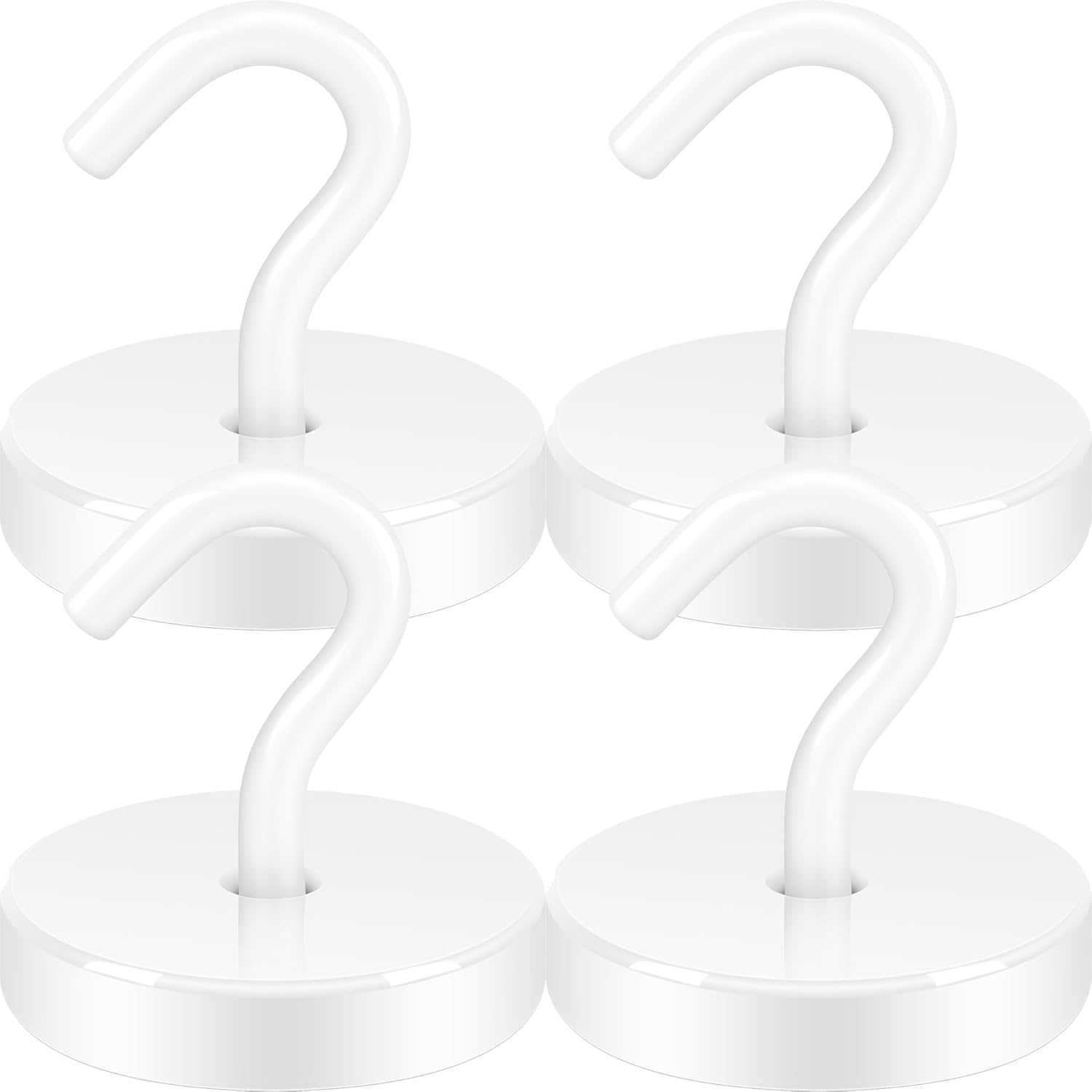 Neosmuk Magnetic Hooks, Heavy Duty 170lb Strong Magnets for Cruise Cabins, Ship Essentials, Large Metal Hooks for Hanging on Fridge(White,Pack of 4)