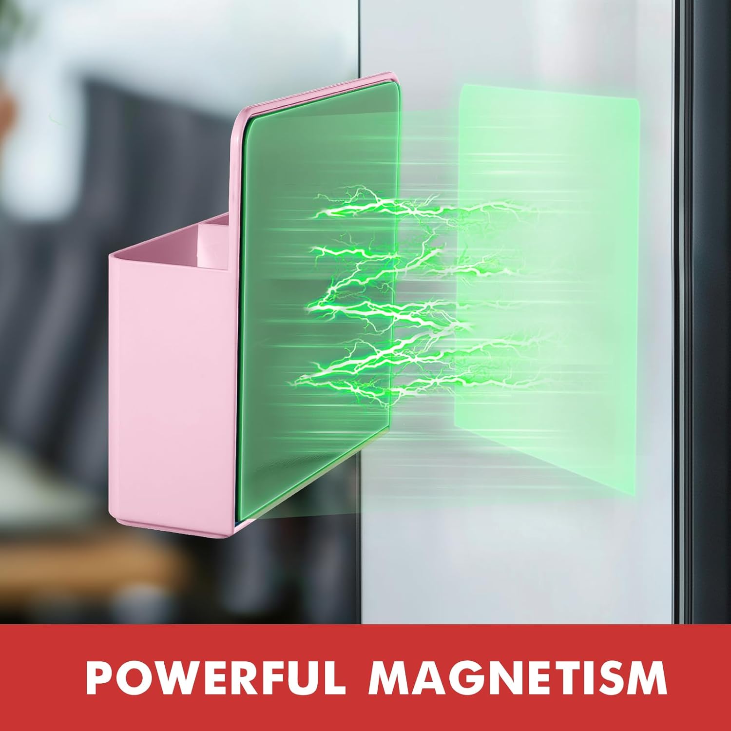 BEYGORM 2 Pack Plastics Magnetic Pen Holder for Refrigerator, Dry Erase Marker Holder for Whiteboard,Magnet School Locker Organizer Accessories, Pencil Cup, Pen Caddy, Classroom Organization(Pink)