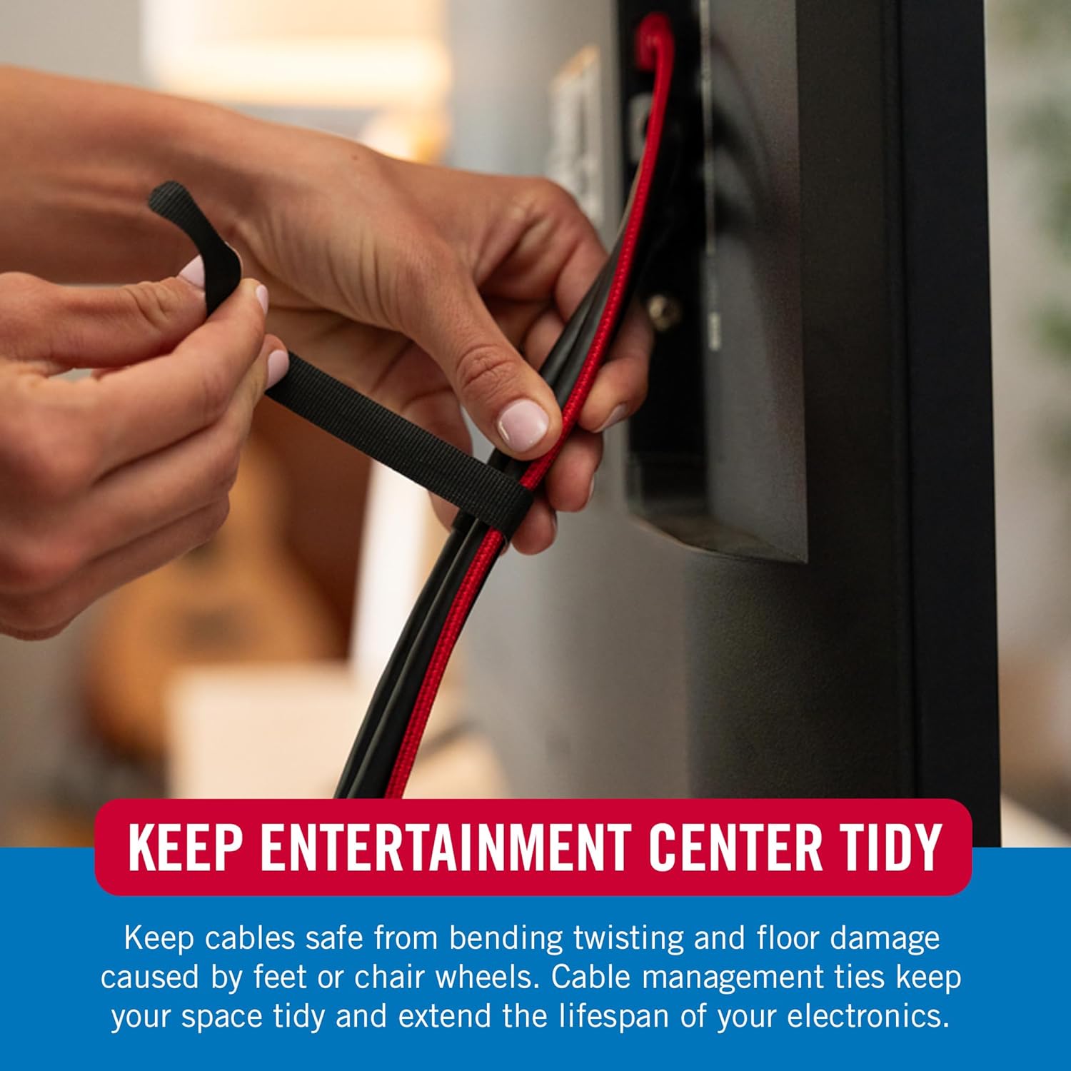 - PROTECT YOUR CABLES: Keep cables safe from bending twisting and floor damage caused by feet or chair wheels. Cable management ties keep your space tidy and extend the lifespan of your electronics.