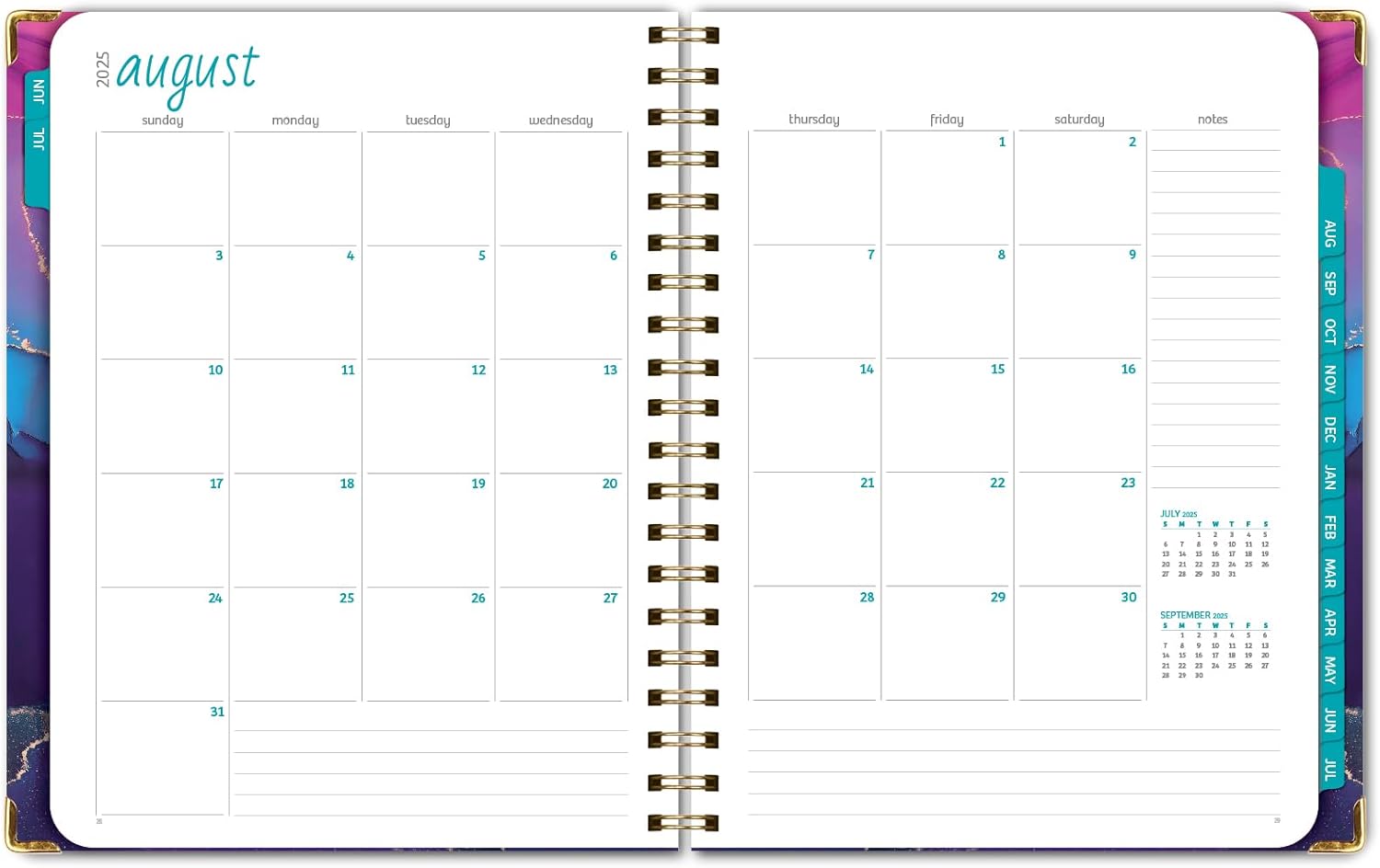 HARDCOVER Academic Year 2025-2026 Planner: (June 2025 Through July 2026) 8.5"x11" Daily Weekly Monthly Planner Yearly Agenda. Bookmark, Pocket Folder and Sticky Note Set (Pink Purple Marble)