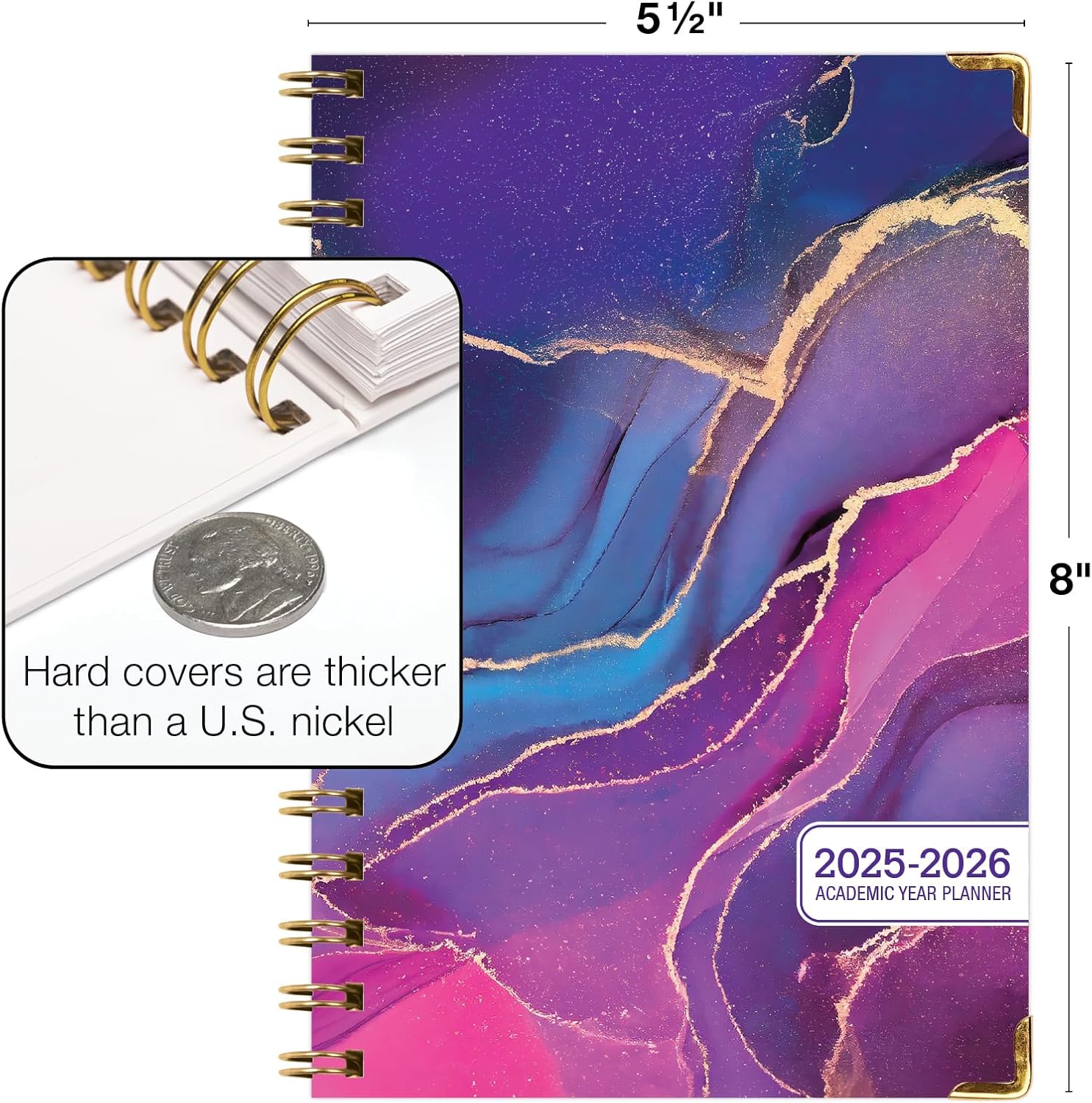HARDCOVER Academic Year 2025-2026 Planner: (June 2025 Through July 2026) 5.5"x8" Daily Weekly Monthly Planner Yearly Agenda. Bookmark, Pocket Folder and Sticky Note Set (Pink Purple Marble)