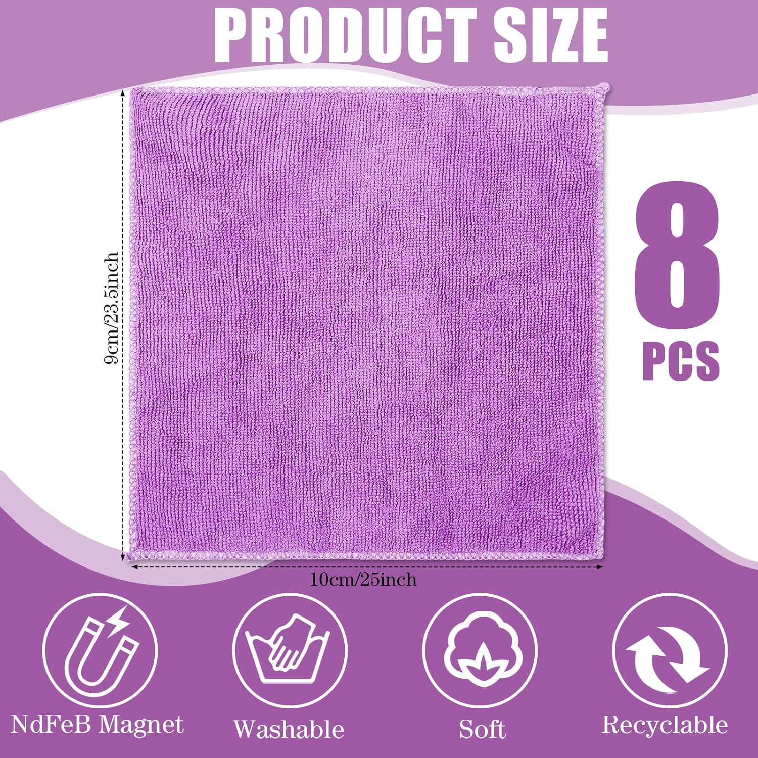 Zopeal 8 Packs Dry Erase Board Cleaning Cloth Microfiber Eraser Magnetic Whiteboard Eraser Washable for Whiteboard Dry Erase Cloth for Home and Office, 10'' x 9. 25''(Purple)