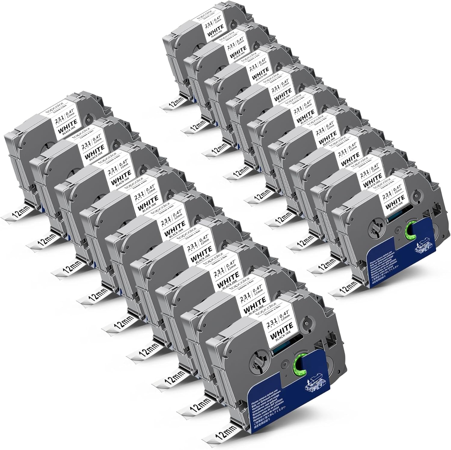 - Packages: 20-Pack 12mm black on white label maker tape compatible for Brother label tape 12mm tze231 tze-231 tz231 tz-231 tze tz tape 12mm 0.47 white; Size: 0.47 inch x 26.24 feet ( 12mm x 8m ). Color: Black on White