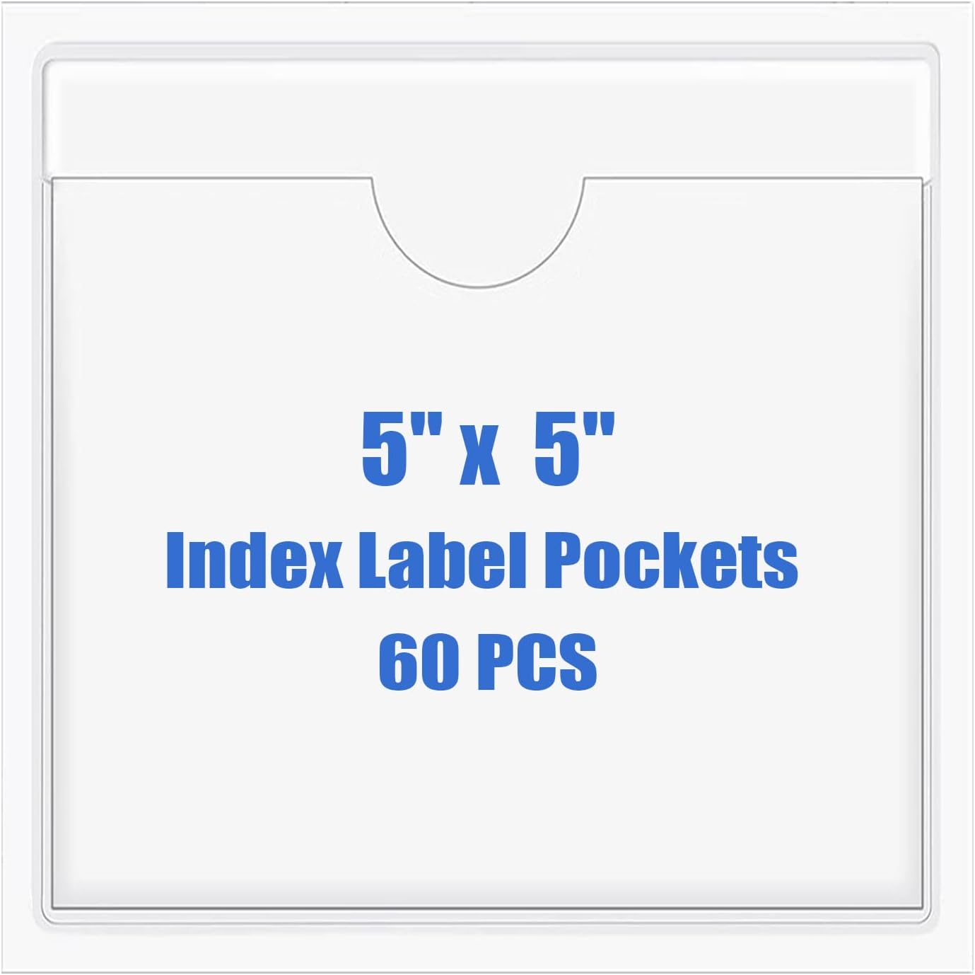 Origin-Joy 60 PCS Self Adhesive Index Card Pockets with Top Open, Clear Plastic Label Holder for Cards of Note, Library and Business, Adhesive Label Pockets & Card Holder (5 x 5 inch)