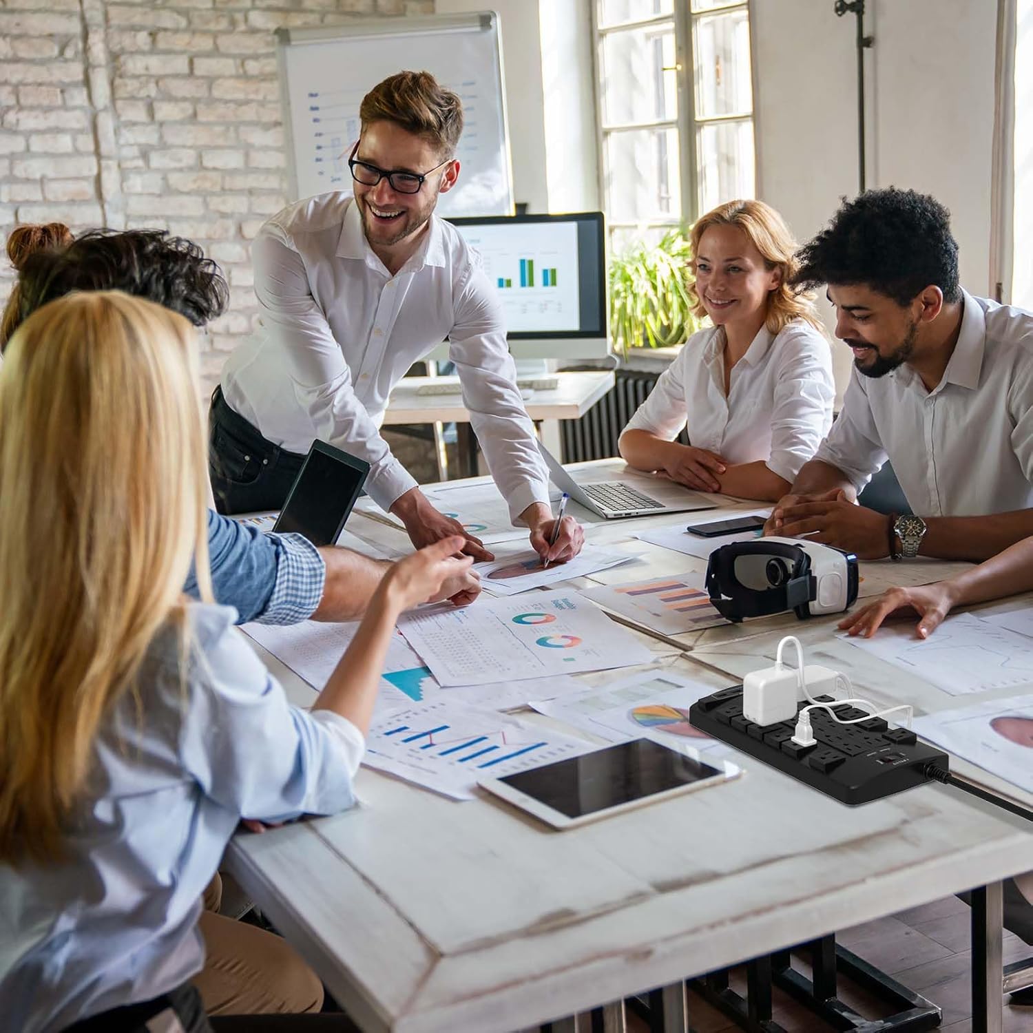 - 【Safety and Certificate】: ETL safety certified, with extension cord and other major components certified by UL. The over current protection switch limits the power strip's working current to certain setting, so it will not get hot during usage. Environmental protection and fire-resistance PC shell with flame retardant at 1382℉ makes it more durable and longer lifetime.
