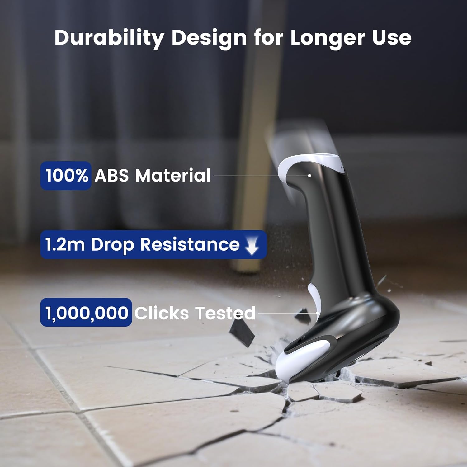 - 2.G Wireless & USB Wired Freely Switching: This wireless barcode scanner offer flexibility, just plug in the 2.4G dongle/usb cable, it will automatically identify, connect and you're ready to go, simplifying and reducing setup time. Any shopkeeper that is mobile or always on the go will find our wireless & usb barcode scanner to be the most accommodating for lightning-fast transaction processes or recording inventories