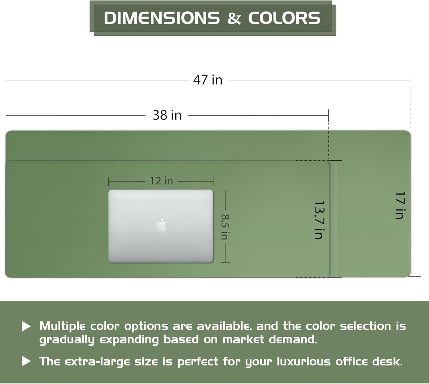 Aothia Leather Desk Pad Protector - Large Mouse Pad, Office Desk Mat, Non-Slip PU Leather Desk Blotter, Laptop Desk Pad, Waterproof Desk Writing Pad for Office and Home (Olive Green, 38" x 13.7")