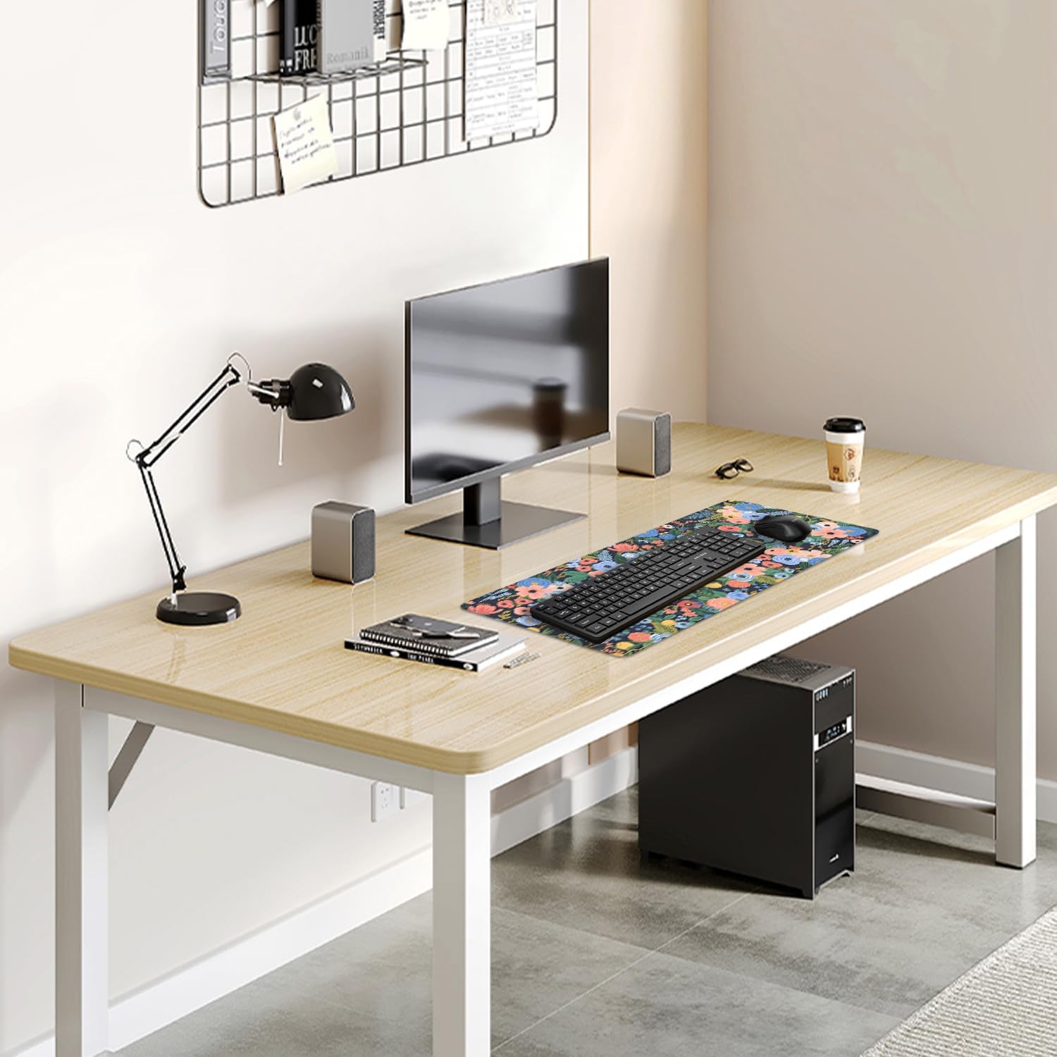 Garden Party Flowers Desk Pad Mouse Pad,Large Floral Mouse Mat with Stitched Edges,Non-Slip Rubber Base Mousepad for Office PC Keyboard Laptop and Home Work Desk Mat(27.5X11.8 in)