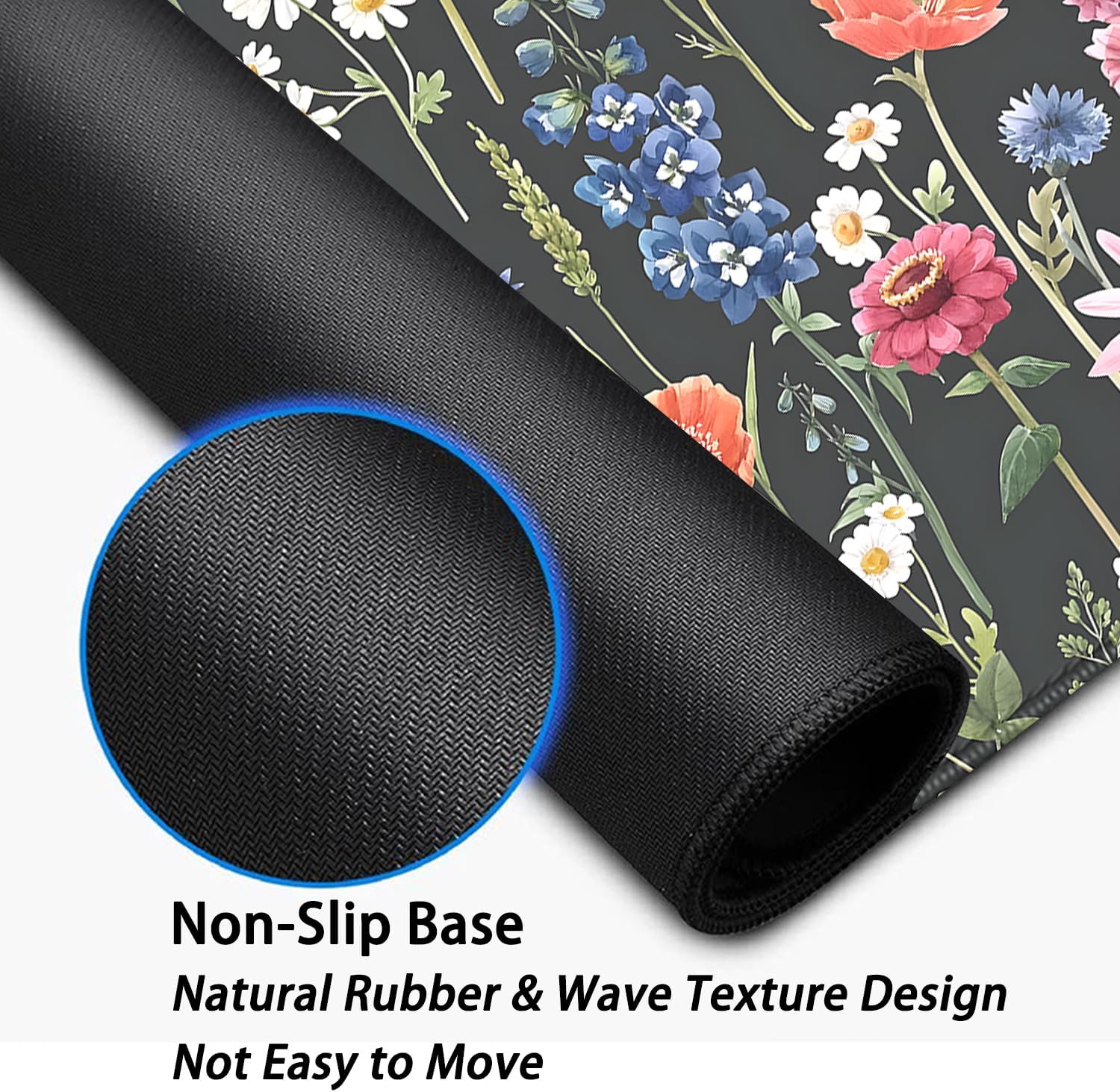 Black Background Watercolor Flowers Desk Pad Mouse Pad,Large Floral Mouse Mat with Stitched Edges,Non-Slip Rubber Base Mousepad for Office PC Keyboard Laptop and Home Work Desk Mat(27.5X11.8 in)